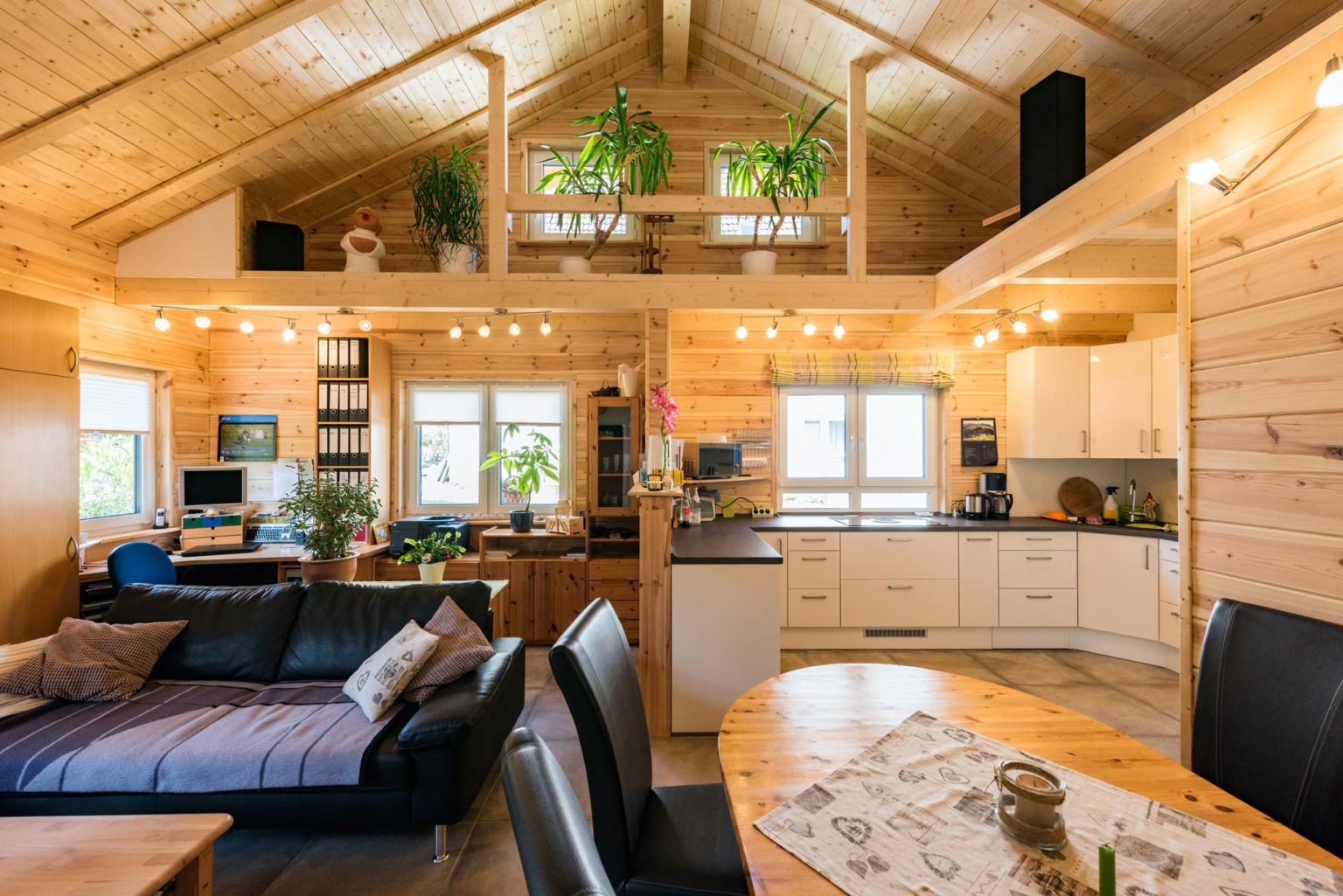 Großzügige Raumhöhe im Holzhaus schafft Kopffreiheit