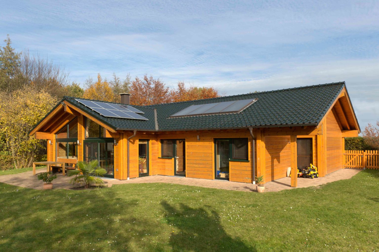 In der Wachstumsphase filtern Bäume Kohlendioxyd aus der Luft und speichern es als Kohlenstoff. Dieser Speichervorgang hält auch dann noch an, wenn das Holz längst verbaut ist. Bei der „Herstellung“ des Baustoffs Holz wird das Klima nicht belastet, im Gegenteil! Auch beim Transport der Rohstoffe, bei der Fertigung der Hauswände und beim Transport der Wandelemente zur Baustelle wird wenig „graue“ Energie verbraucht. Und die rein theoretisch errechneten, einseitig betrachteten U-Werte winddichter Massivholzwände verzerren den tatsächlichen, praktisch ermittelten Heizenergieverbrauch in den Holzhäusern dieses Herstellers. Wertbeständig sind Holzhäuser sowieso, das beweisen Jahrhunderte alte Bauten, trotz uralter Technik. Ein konstruktiver Witterungsschutz macht chemische Schutzanstriche überflüssig, und gegen den natürlichen Vergrauungseffekt – ein rein optisches Problem - können biologische Lasuren aufgetragen werden. Die Brandschutzklasse von Massivholzhäusern entspricht konventionell gebauten Wohnhäusern. „Wir genießen das Wohnen in unserem wohngesunden, Energie sparsamen und ökologisch korrektem Holzhaus jeden Tag aufs Neue!“, sagt Manuela Hamacher. „Und im Handumdrehen gebaut war`s auch!“, ergänzt ihr Mann abschließend.