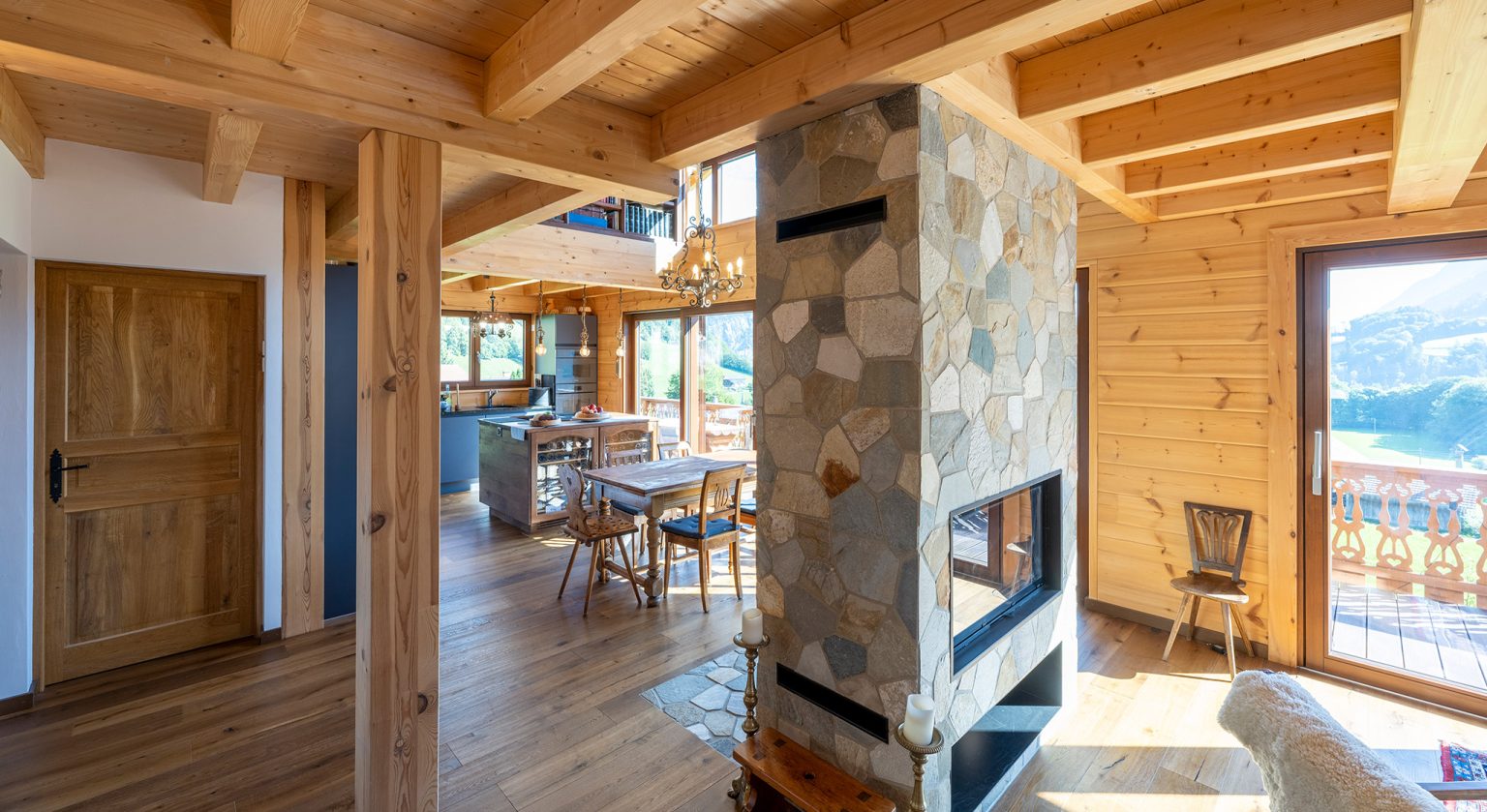 Beheizt wird das Chalet mit einer modernen Luft-Wärmepumpe via Fußbodenheizung und gemütlicher Strahlungswärme, die der Kaminofen verströmt, wenn darin ein knisterndes Holzfeuer entflammt. Das Wasser wird mit Solarthermie erwärmt und die Installation einer PV-Anlage ist ebenfalls schon fest eingeplant.