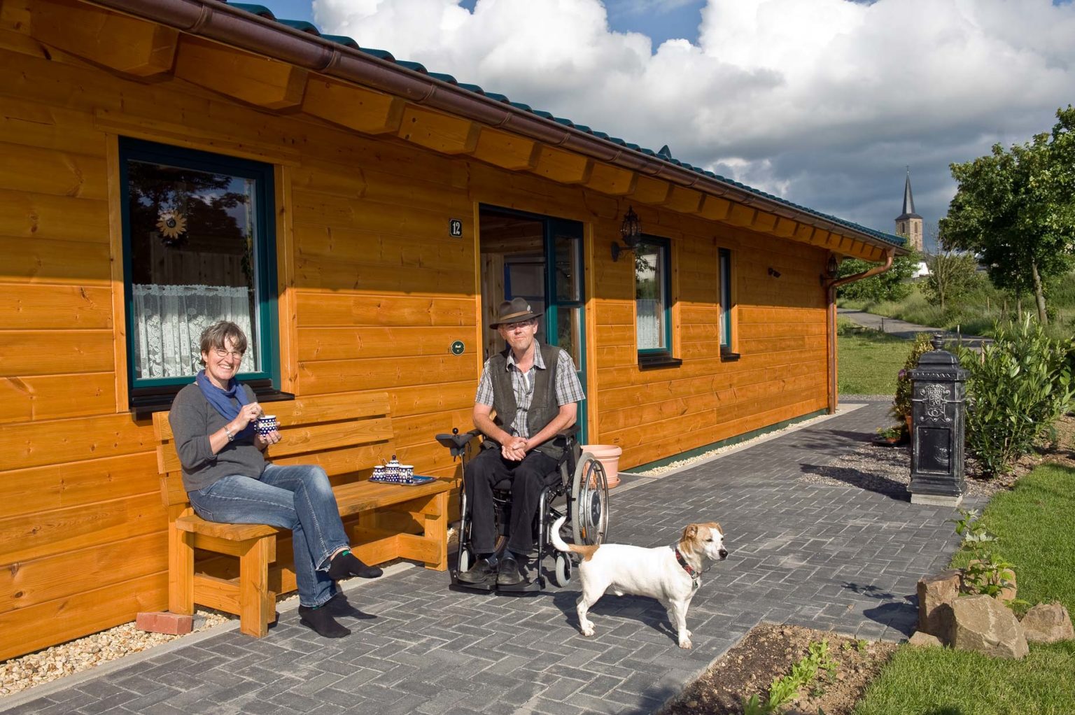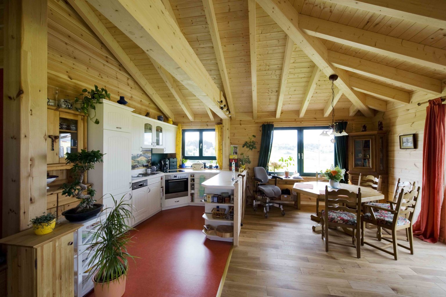 Im Holzhaus "Eifelhöhe" kann man sich frei bewegen, ohne irgendwo anzuecken. Die begabten Amateurarchitekten entschieden sich für einen L-förmigen Grundriss, um eine windgeschützte Terrasse zu konstruieren. Eine weise Entscheidung, wie sich später herausstellte, denn auf der luftigen Höhe ihres Grundstücks hat man nicht nur eine herrliche Fernsicht, sondern es weht ständig ein frischer Wind. Für Mara und Hans stand von Anfang an fest, dass ein Holzhaus aus Rundstämmen nicht das richtige für sie ist. In Frage kam aber ausschließlich ein massives Holzhaus, denn man wollte keine halben Sachen machen. Auf ihrer Musterhaustour durch Deutschland stießen sie dann erst ganz zuletzt auf den Anbieter ihrer Wahl - fast hätten sie schon entnervt aufgegeben. Dessen Musterhäuser gefielen ihnen optisch sowohl von außen wie innen gleichermaßen, und nach einer Führung durch die Werkstatt war klar, dass der richtige Baupartner gefunden war. Vor allem die garantierte Setzungsfreiheit der im Werk vorgefertigten massiven Polarkiefernholzwände überzeugte das Paar. Und dann ging alles plötzlich ganz schnell: Von der individuellen Beratung und Planung seitens der Baufirma, über den Vertragsabschluss, bis hin zum fixen Hausbau - im Handumdrehen konnten Mara und Hans ins neue Holzhaus einziehen. Alles verlief problemlos und stressfrei für die Bauherren. Das Ergebnis ist außerdem ein Paradebeispiel für barrierefreies Bauen.