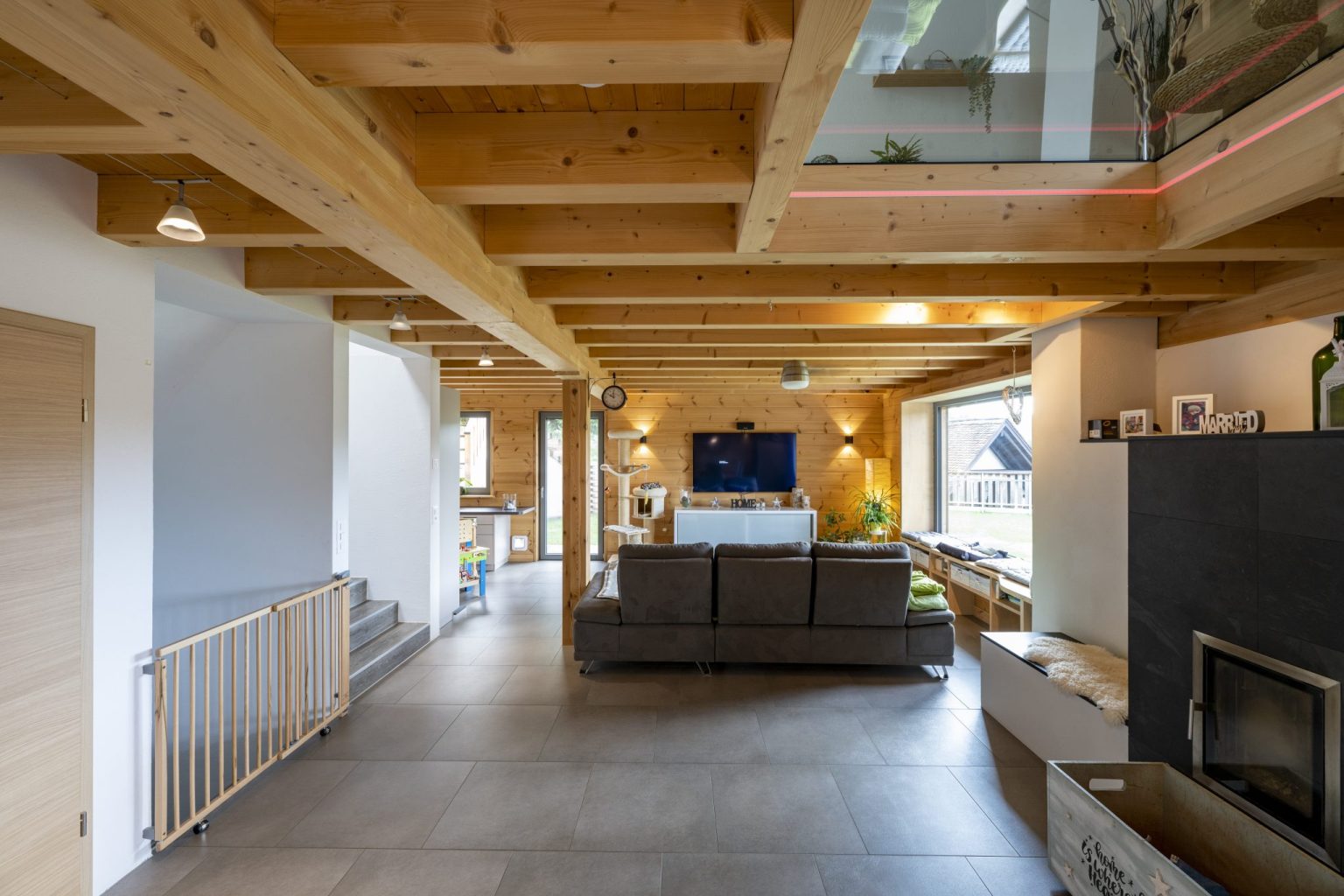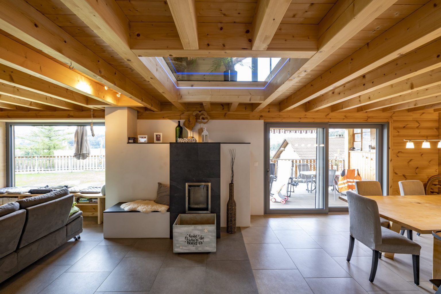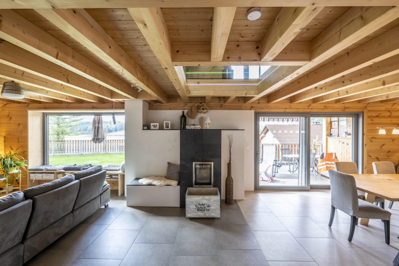 Holzhaus mit geschickter optischer Raumaufteilung und sparsamen Energiebedarf