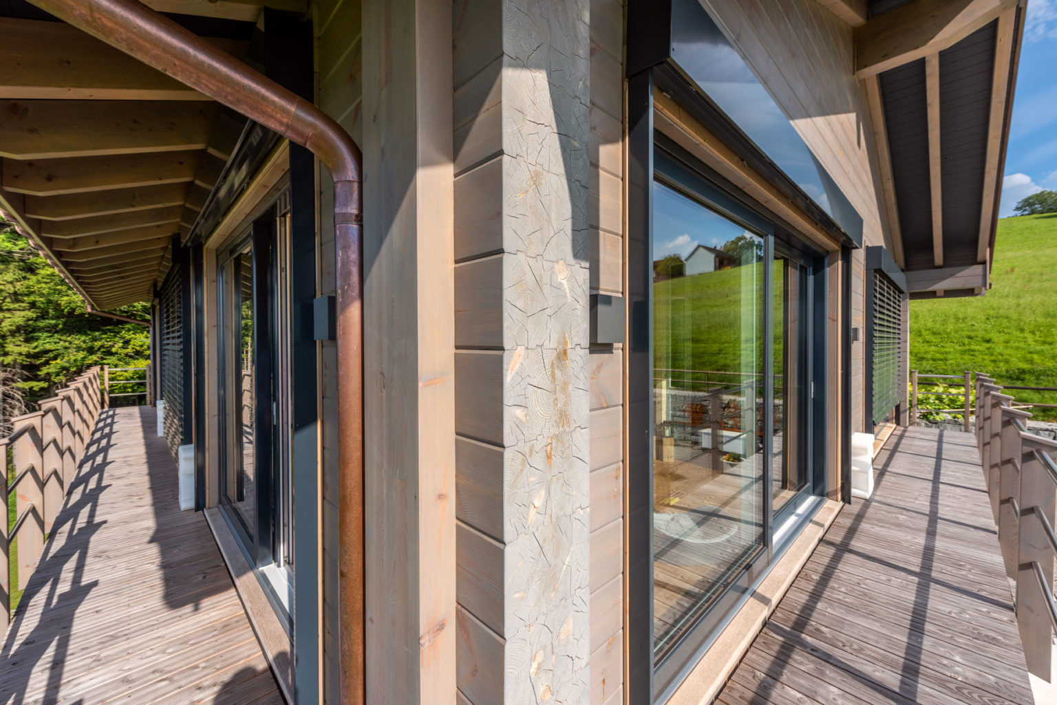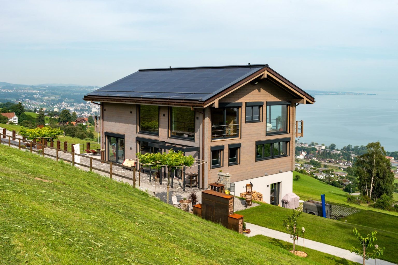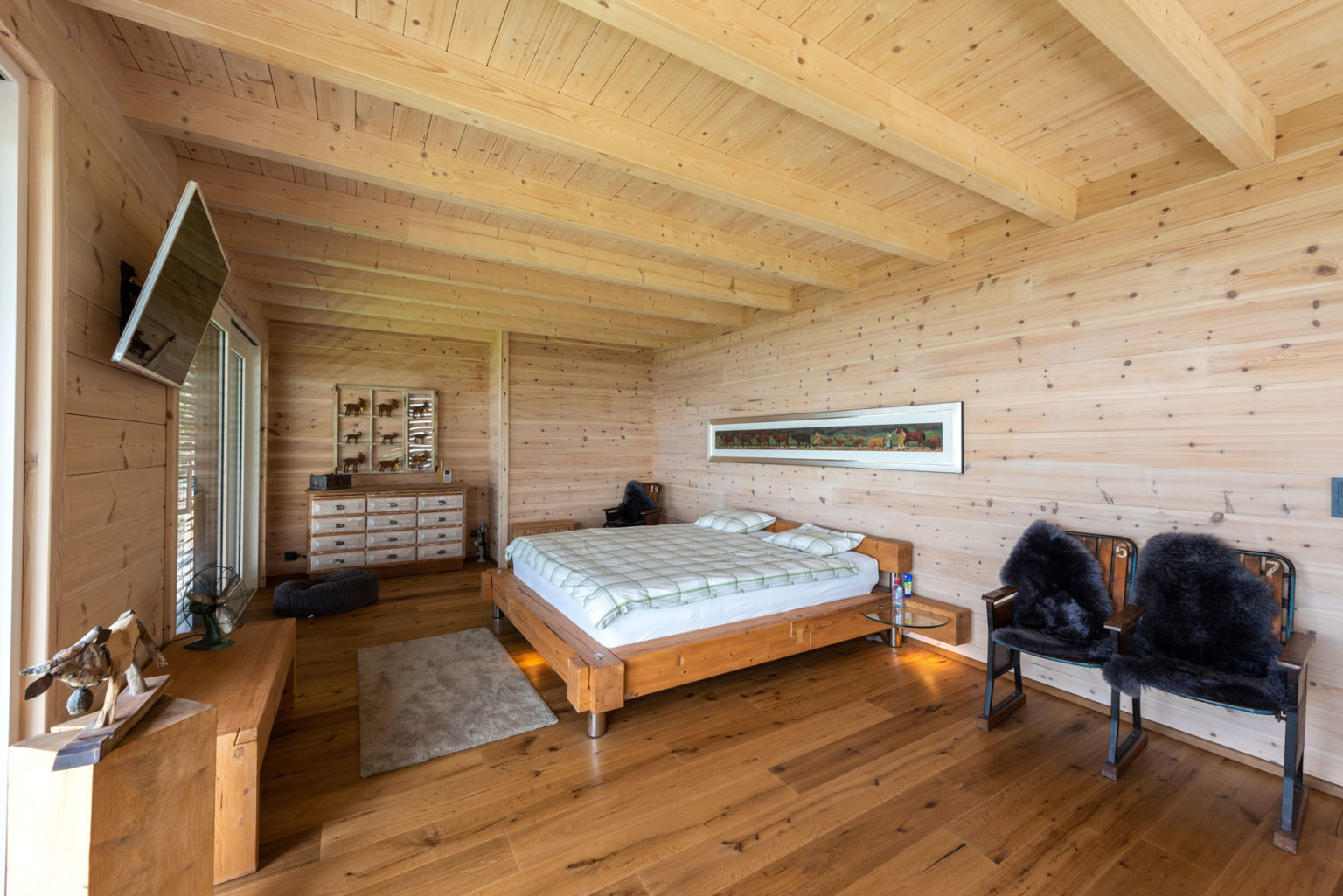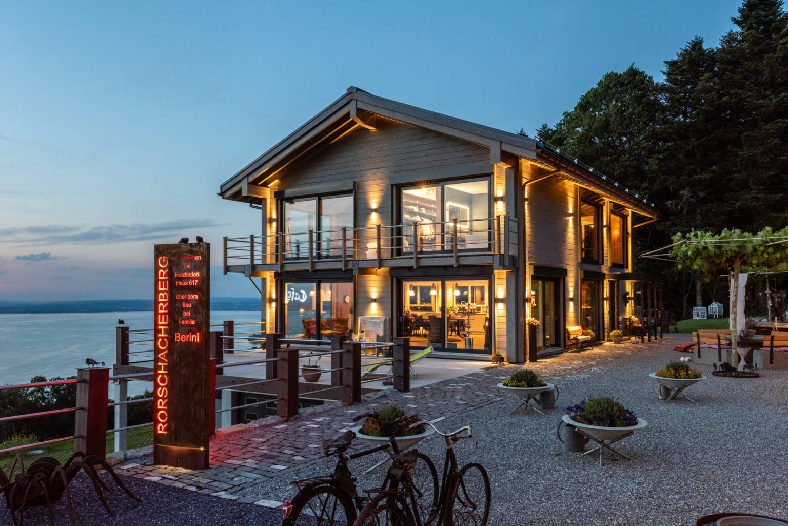 Holzhaus „Gallus‘ Traum“ vereint vieles, scheinbar Gegensätzliches miteinander: Einen konservativen, jahrhundertelang bewährten Baustoff mit modernster Haustechnik und nachhaltiger, ökologischer Blockhaus-Bauweise; eine klassische Architektur mit modernen Gestaltungsdetails und Natürlichkeit; Bodenständigkeit mit freiem Geist; warme Behaglichkeit mit lichtdurchfluteter Transparenz; die moderne, urbane Schweiz mit ihren ursprünglichen, landwirtschaftlichen und industriellen Traditionen bis hin zu zukunftsweisenden Technologien. „Natürlich verfügt mein Holzhaus über jeglichen modernen Komfort, der den Wohnalltag erleichtert und versüßt, aber auf digitale Elemente, beispielsweise bei der Haussteuerung, und „Schnickschnack“ habe ich bewusst verzichtet. Die Reduzierung aufs Wesentliche und gemeinsam verbrachte Zeit mit Familie und Freunden – das ist für mich Luxus!“, offenbart er. Sein persönliches Gespür für Ästhetik und die eigene persönliche Handschrift machen aus der Massivholzvilla ein außergewöhnliches Unikat auf hohem Niveau.