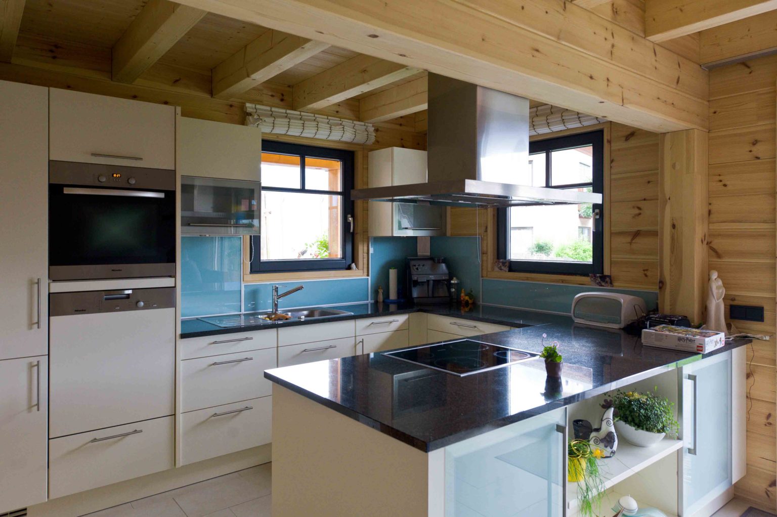 ER wollte seinen Traum vom massiven Holzhaus realisieren, während für SIE auf keinen Fall ein rustikales Rundstammhaus in Frage kam. Im Internet stieß man auf Fullwood und besuchte kurzerhand eines der firmeneigenen Musterhäuser und die dazugehörige Werkstatt. Aber nicht zu zweit: Vorsichtshalber mussten ein befreundeter Zimmermann, der gleichzeitig Ingenieur ist, ein befreundeter Architekt, ein befreundeter Elektriker sowie ein befreundeter Maurer mit zum Besichtigungstermin – nichts sollte dem Zufall überlassen werden. Nachdem die Ehefrau von der modernen Optik und dem lichten Ambiente des Musterhauses begeistert war, und die befreundeten Profis die technische Seite geprüft und für sehr gut befunden hatten, kam es schnell zum Vertragsabschluss. Die garantierte Setzungsfreiheit der in Fertigkonstruktion hergestellten, massiven Kiefernholzwände und deren Luftdichtigkeit ermöglichen ein komfortables und behagliches Wohnen; die vielen positiven Eigenschaften von Massivholz als Baustoff verhelfen zu gesundem Wohnen in menschenfreundlichem Raumklima – ein besonders wichtiger Aspekt für die Eltern zweier Söhne.