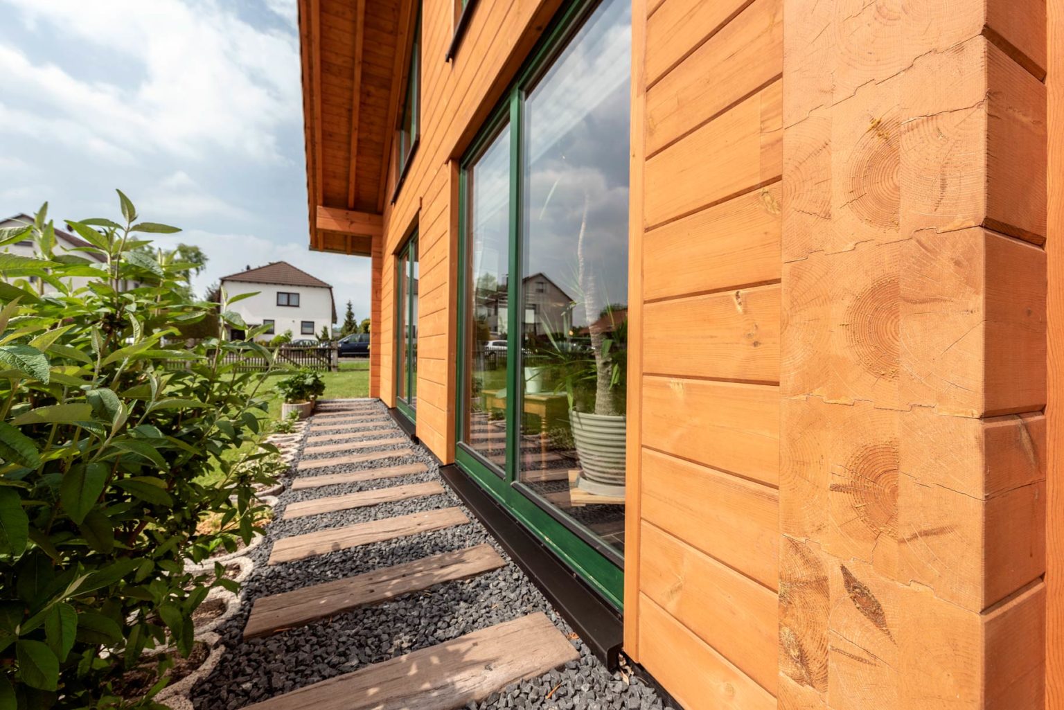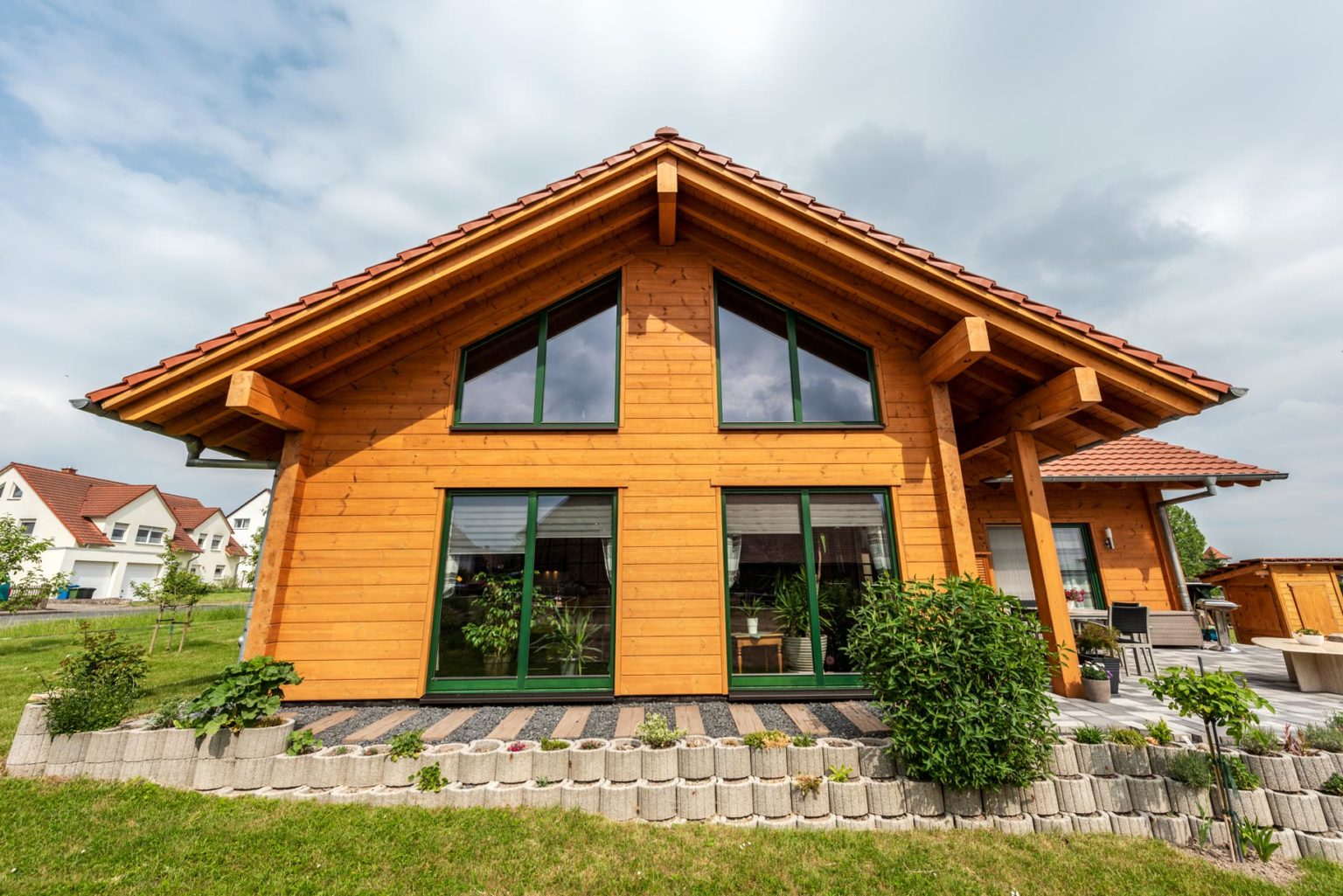 Die Eigentümer von Holzhaus „Harzblick II“ entschieden sich für eine Richtmeistermontage, bei der sie ihr Eigenheim selbst mit aufbauen und ausbauen konnten. „Da wir nicht mehr die Jüngsten sind, sollte der Hausbau sowohl schnell als auch einfach vonstattengehen.“, betont der Hausherr. Er und seine Frau halfen nicht nur bei der Hausmontage, sondern machten auch viele Arbeiten im Innenausbau selbst. Lediglich Heizung und Sanitär übergaben sie komplett an ortsansässige Fachfirmen, teilweise auch die Elektroinstallationen. „Unser Holzhaus wurde dann am Tage unserer Silberhochzeit geliefert.“, erinnert sich die Hausherrin. Dabei wurden die im Werk gefertigten Wandelemente per Tieflader herbeigeschafft, mittels Kran auf den Bauplatz gestellt und sowohl rasch als auch exakt vom Fullwood-Richtmeister und seinen Helfern montiert. Im Vorfeld hatte sich das Eigentümerpaar genau überlegt, wie ihr Holzhaus aussehen sollte. Der Architekt von Fullwood ging gerne auf die Wünsche und Ideen ein. Bereits drei Monate nach dem Bauantrag wurde Holzhaus „Harzblick II“ geliefert und nur weitere drei Monate später konnte eingezogen werden. „Wir bekamen zwei Birken zur Silberhochzeit geschenkt, die stehen jetzt auf unserer Finnland-Wiese.“, freut sich die ehemalige Wirtin einer Gaststätte. Nun hat das Ehepaar zu Hause die Erholung, die es damals in dem skandinavischen Land suchte.