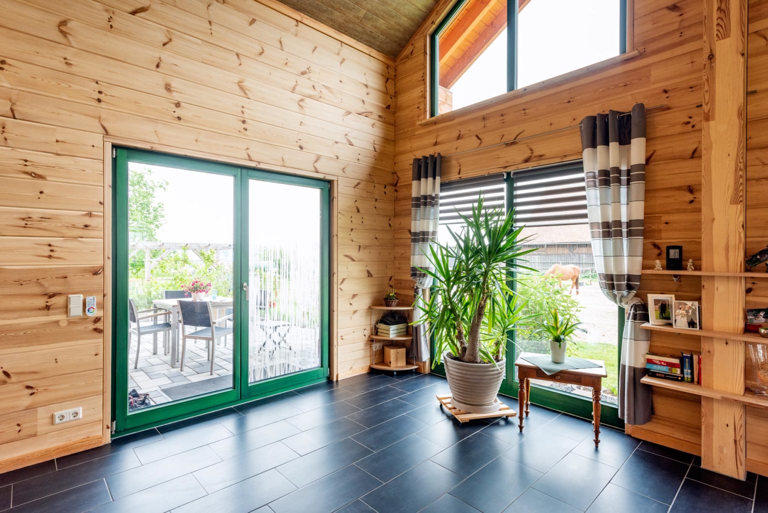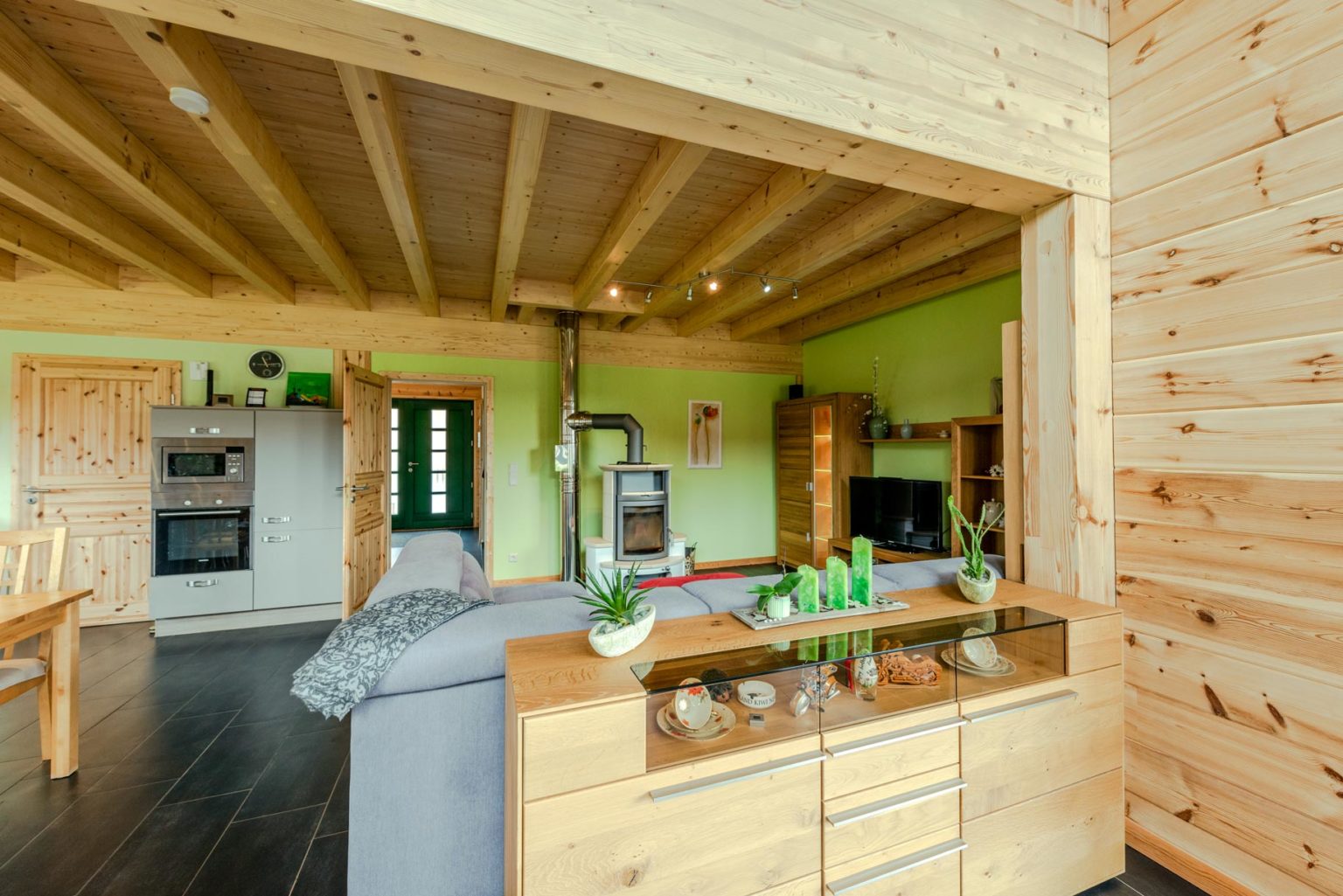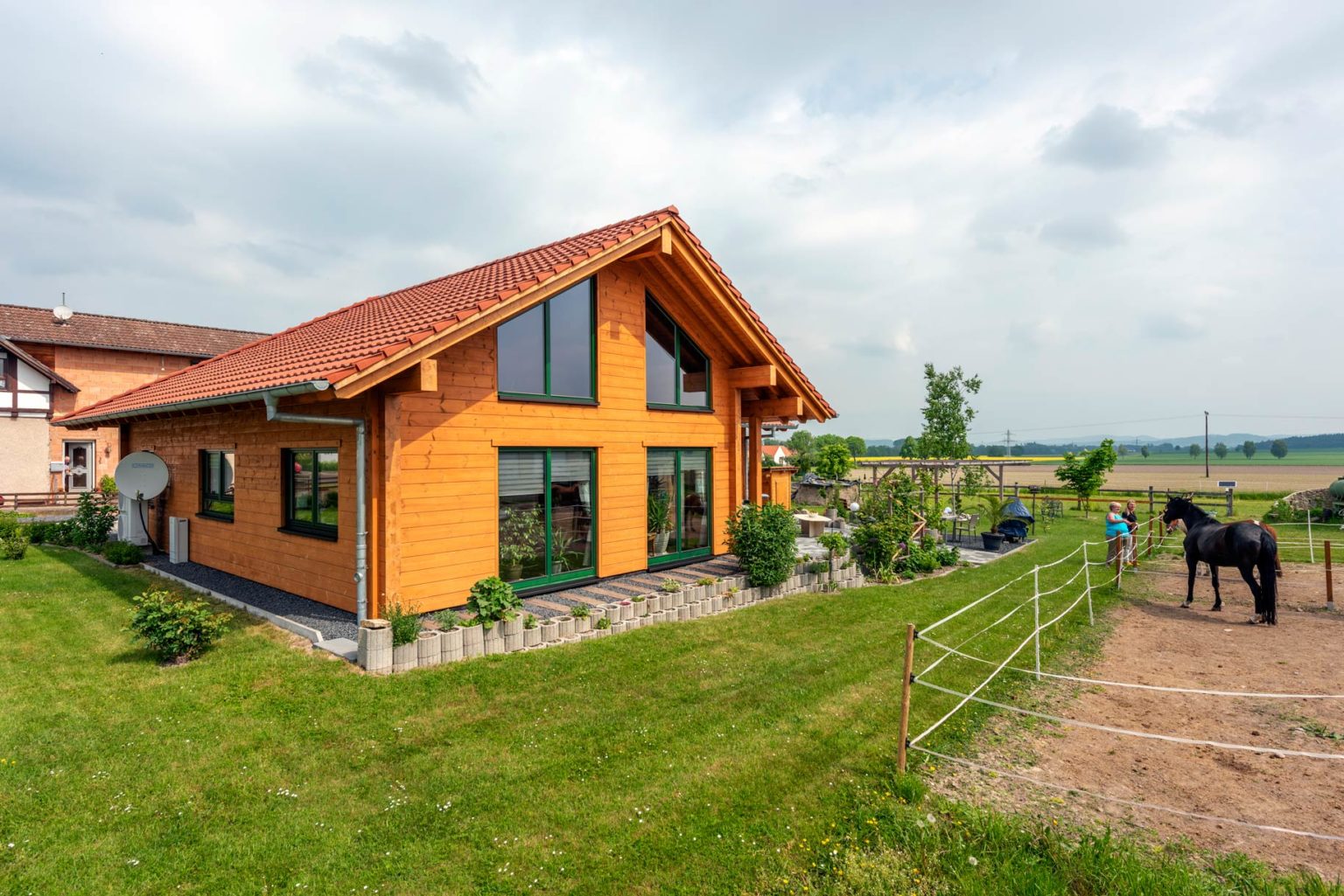 „Mit unserer Begeisterung für Fullwood haben wir auch unsere Tochter angesteckt.“, freut sich der Hausherr. Dort, wo jetzt die Pferdekoppel ist, wird demnächst ein weiteres, größeres Holzhaus mit dem erfahrenen Holzhaus Spezialisten gebaut. Ob sich die Tochter ebenfalls für eine Kombination aus Luft/Wasser-Wärmepumpe (Fußbodenheizung) und Kaminofen (Holzscheite) zum Heizen erwärmen wird, steht noch nicht fest. Die Besitzer von Holzhaus „Harzblick II“ sind jedenfalls sehr zufrieden mit den gut isolierenden Blockwänden, Dachaufbau und Fenstern sowie mit ihrer Heizung: Im Winter werden nur das Badezimmer und das Arbeitszimmer über die Fußbodenheizung beheizt. Der offene Wohnbereich wird hauptsächlich mit dem Kaminofen erwärmt – auch das trägt zum Finnland-Feeling bei.