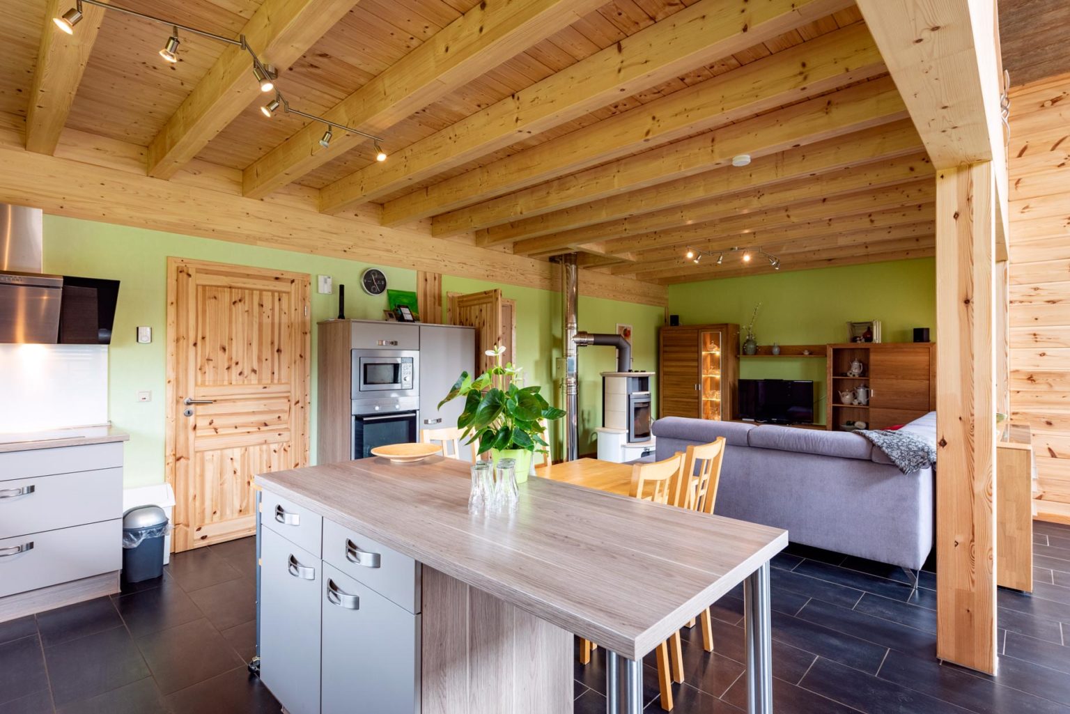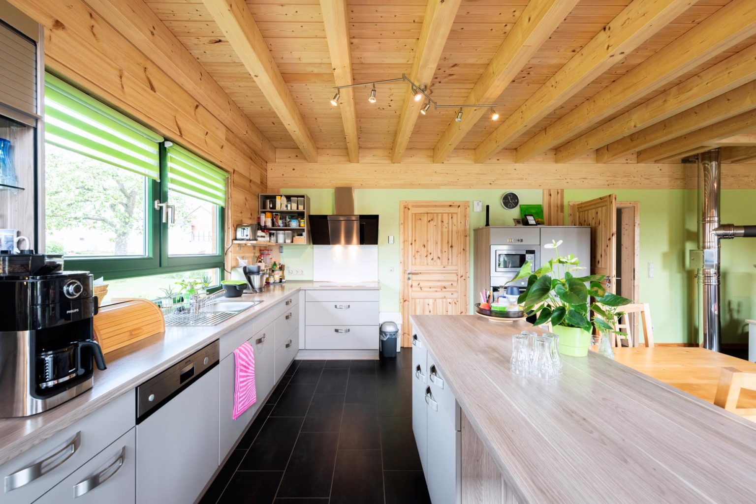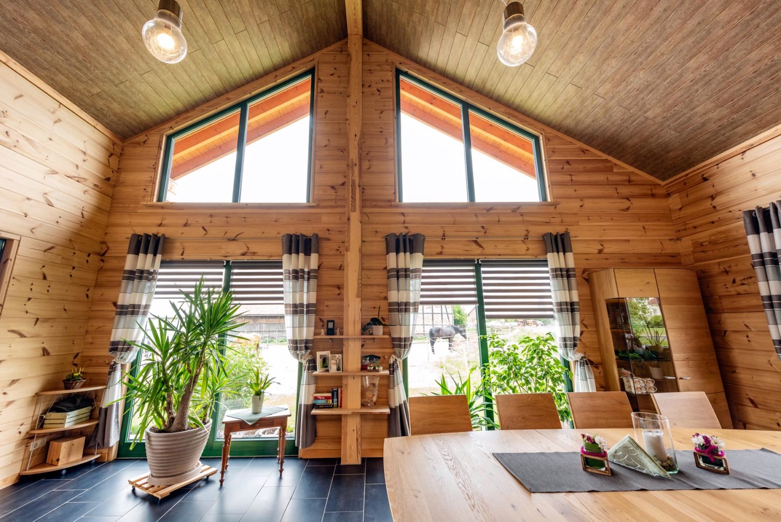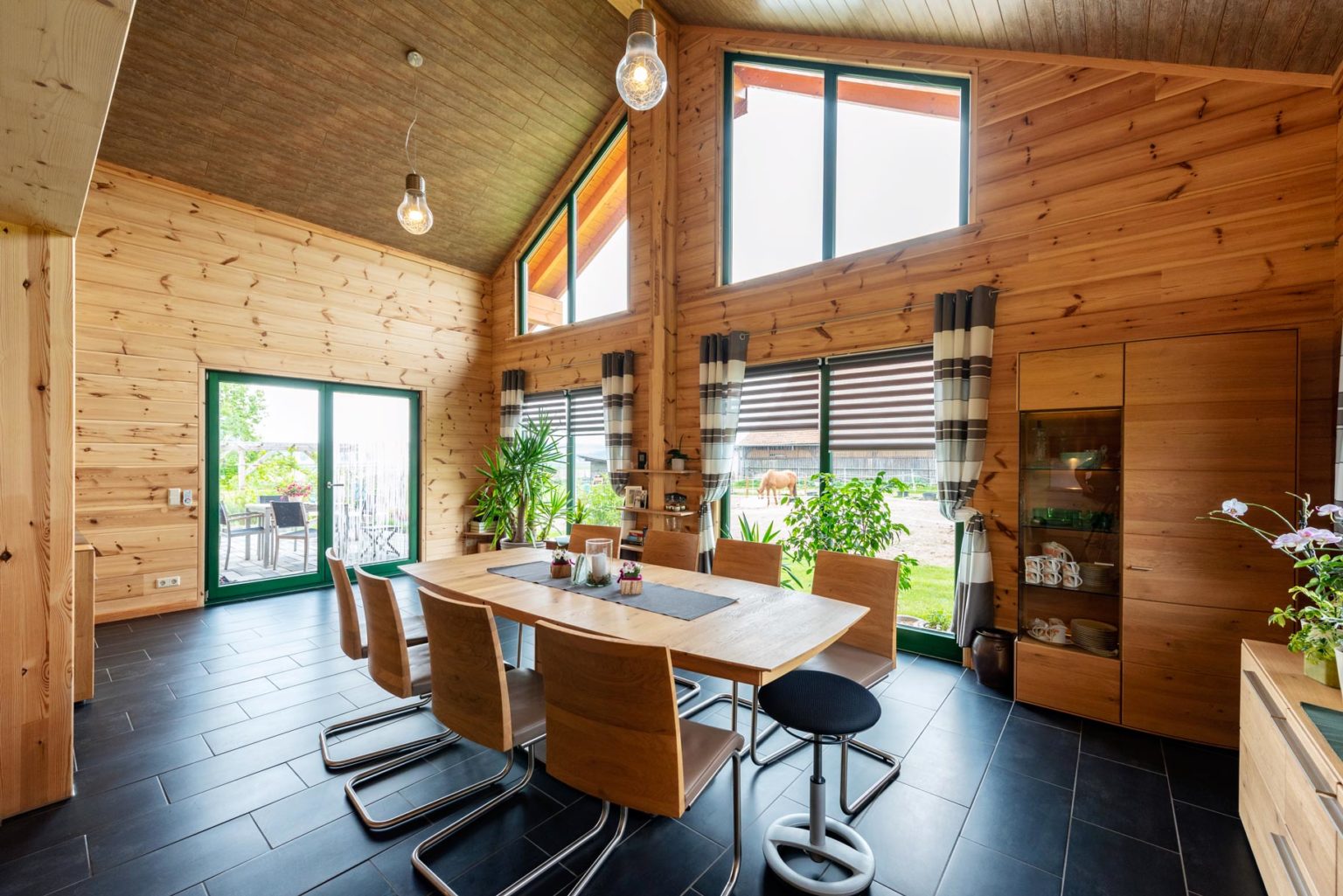 „Mit unserer Begeisterung für Fullwood haben wir auch unsere Tochter angesteckt.“, freut sich der Hausherr. Dort, wo jetzt die Pferdekoppel ist, wird demnächst ein weiteres, größeres Holzhaus mit dem erfahrenen Holzhaus Spezialisten gebaut. Ob sich die Tochter ebenfalls für eine Kombination aus Luft/Wasser-Wärmepumpe (Fußbodenheizung) und Kaminofen (Holzscheite) zum Heizen erwärmen wird, steht noch nicht fest. Die Besitzer von Holzhaus „Harzblick II“ sind jedenfalls sehr zufrieden mit den gut isolierenden Blockwänden, Dachaufbau und Fenstern sowie mit ihrer Heizung: Im Winter werden nur das Badezimmer und das Arbeitszimmer über die Fußbodenheizung beheizt. Der offene Wohnbereich wird hauptsächlich mit dem Kaminofen erwärmt – auch das trägt zum Finnland-Feeling bei.