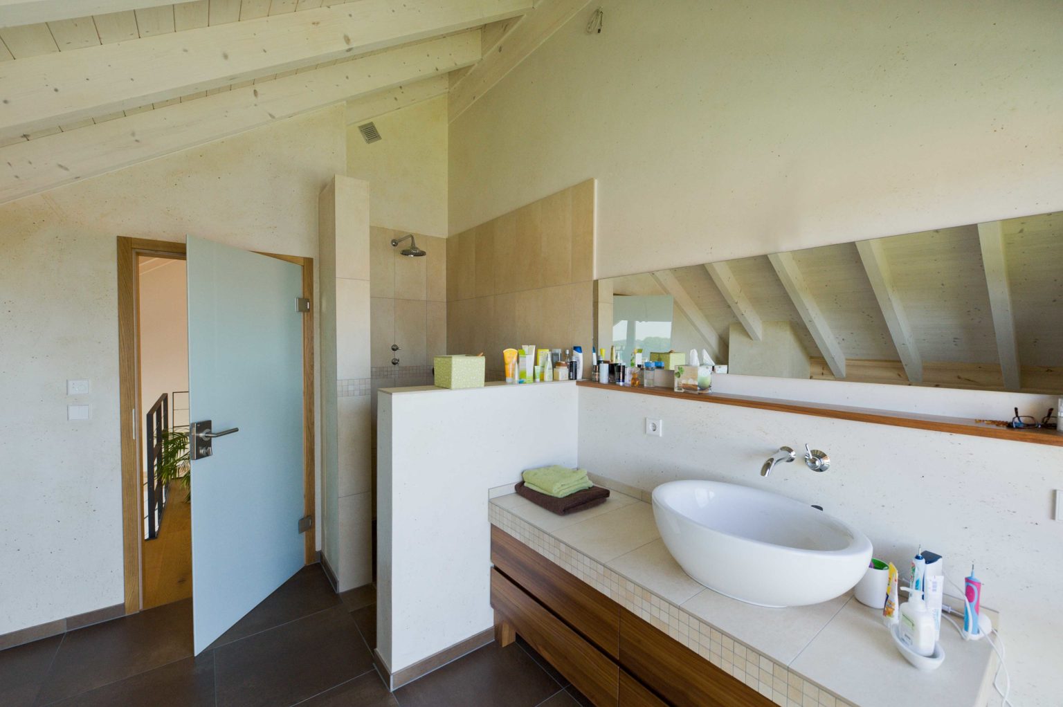 Die Türen von Fullwood waren offen, also ging er auch hinein – und verguckte sich sofort in das Holzhaus. Wissend, dass seine Frau kein Holzhaus Fan war, überraschte Bruno Berndt sie mit einem Besuch ebendieses Musterhauses und siehe da: Yvonne Berndt war spontan begeistert. „So hell, luftig und modern hatte ich mir ein massives Holzhaus bis dato nicht vorstellen können.“, erzählt sie. „Ich war positiv überrascht von der Kombination aus sehr hellen Holzwände mit weiß verputzten Wänden im Innern, und von der modernen Einrichtung. Meine Zweifel an einem Holzhaus waren sofort vergessen und alle Vorurteile in Luft aufgelöst.“
