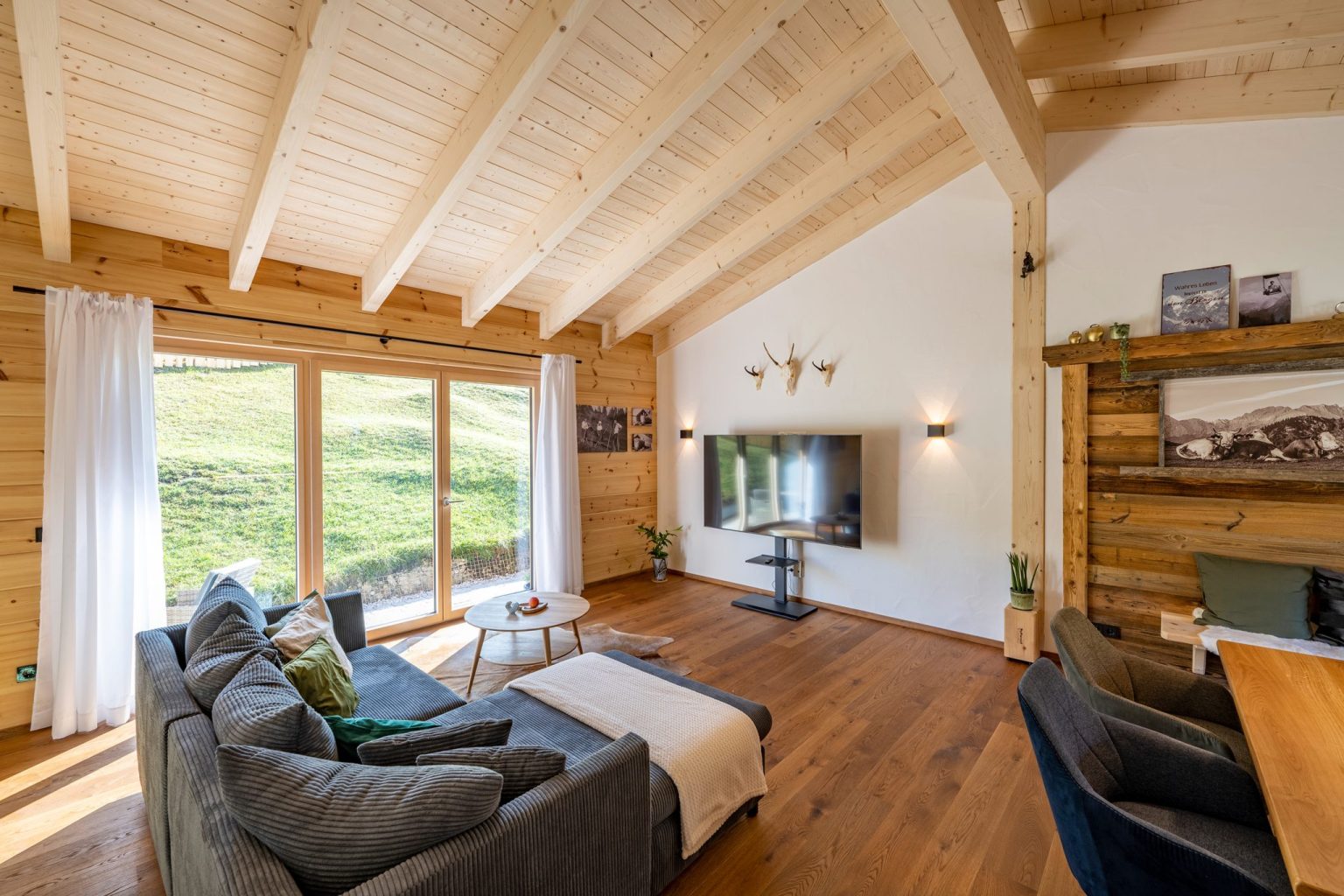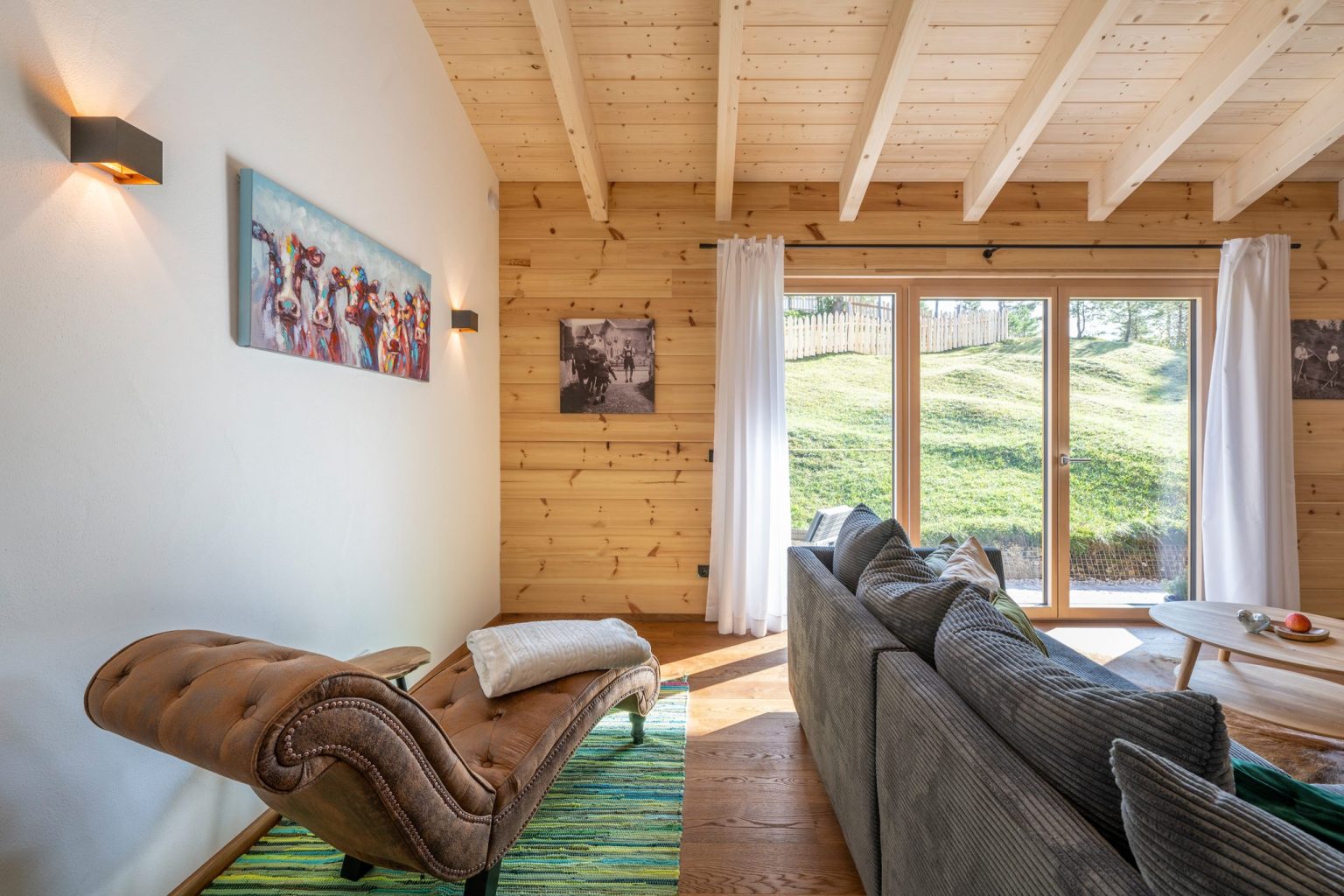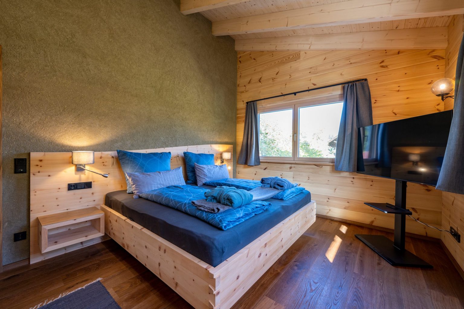Zuerst draußen am Berg aktiv sein und sich dann genussvoll in der Infrarotkabine durchwärmen lassen, oder lieber den ganzen Tag lesend die gemütliche Atmosphäre im Holzhaus und auf der Sonnenterrasse genießen? Hier kommt jeder auf seine Kosten, ob eine kleine Familie oder ein Paar: Das nachweislich wohltuende Klima in Holzhaus „Herzbluad Chalets“ und der zarte Duft nach Kiefernholz tut seine entspannende Wirkung. Erzeugt wird dieses einzigartige, gesunde Raumklima durch 20cm dicke, komplett schadstofffreie Blockbohlenwände aus Polarkiefernholz, die ohne zusätzliche Dämmung auskommen. Ihre Diffusionsoffenheit sorgt für einen natürlichen Luftaustausch – die Wände „atmen“ sozusagen –, für Feuchtigkeitsaufnahme und -abgabe sowie für ein entspanntes Wohlbehagen, das so nur innerhalb von massiven Holzwänden entsteht. Die Herzfrequenz senkende und damit Entspannung fördernde Wirkung von Massivholzwänden wurde sogar wissenschaftlich nachgewiesen!