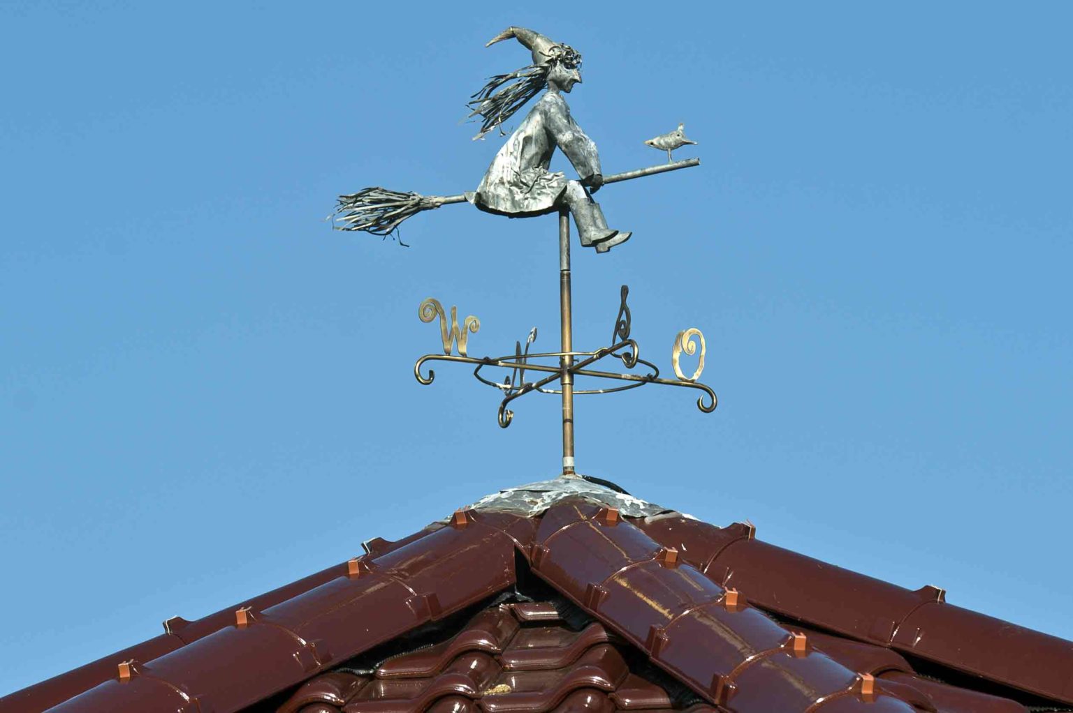 Von Anfang an war klar, dass die Eltern des Hausherrn mit von der Partie sein sollten, und Holzhaus „Hexenturm“ wurde in zwei separate Teile unterteilt: im Grundriss stellt es ein großes Rechteck mit sechseckigem Turmanbau an der Südwest Ecke dar, dort wohnt die jüngere Generation, dem versetzt ein kleineres Quadrat an der Nordwest Ecke angeschlossen ist, wo sich die Senioren wohlfühlen. Beide Hausteile haben einen eigenen Eingang und verfügen über eine „Schleuse“, welche die beiden Wohneinheiten durch die Hauswirtschaftsräume verbindet – selbstverständlich mit Klingel, schließlich handelt es sich um getrennte Haushalte. Die Junioren haben im Erdgeschoss einen großzügigen offenen WohnEssKochbereich - der gut zweidrittel der gesamten Wohnfläche einnimmt – untergebracht, dem sich eine Diele mit Treppenhaus, ein Hauswirtschaftsraum und ein Gäste-WC anschließen. Bei den Senioren ist die Aufteilung ähnlich aber eine Nummer kleiner. Die ältere Generation benötigt in ihrem Dachgeschoss eine Diele, zwei Schlafzimmer, ein Raum für die Modelleisenbahn und ein Badezimmer, während der Sohn für sich und seine Familie zwei Kinderzimmer, ein Elternschlafzimmer, ein Badezimmer, einen Flur und ein Arbeitszimmer eingerichtet hat. Der absolute Hingucker des Hauses ist der rundherum bodentief verglaste Turmanbau, welcher das Hausdach um etwa einen Meter überragt. Die Aussicht, welche man vom Innern des Gebäudes hat, ist umwerfend, und vermittelt das Gefühl, sich in einer imaginären Burg zu befinden.