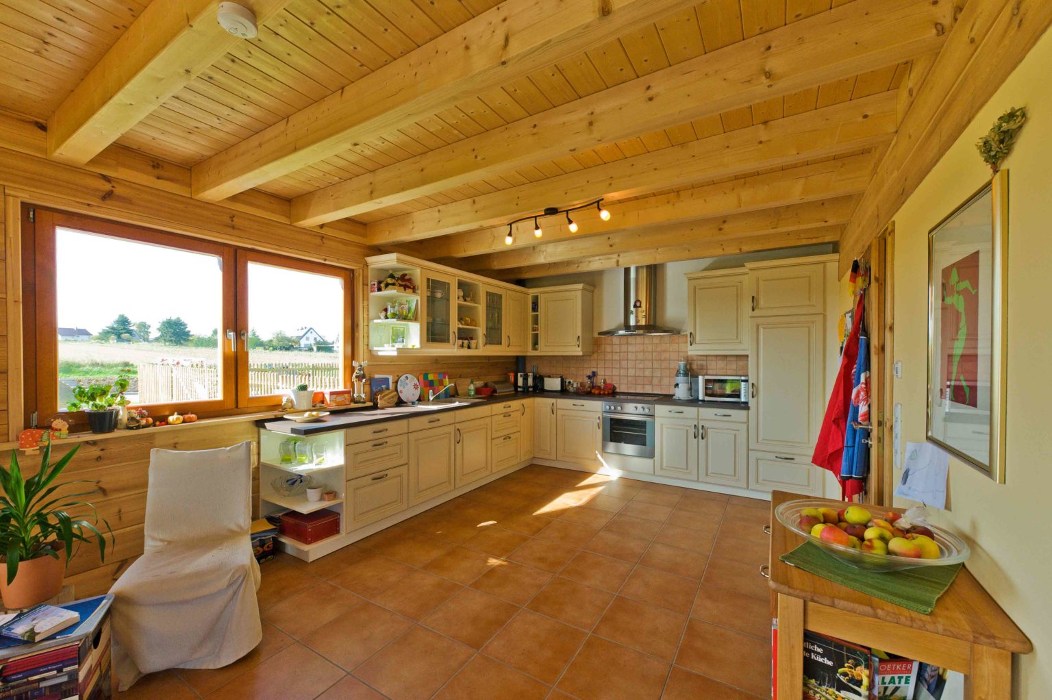 Überhaupt hat das Ehepaar viel selbst gemacht: beim Kauf seines Holzhauses entschieden sie sich für eine Richtmeistermontage, bei der sie unter der Regie eines Richtmeisters ihr Holzhaus aus Massivholz selbst aufbauten. Die zuvor maßgenau im Werk gefertigten Wandteile wurden zum Bauplatz geliefert, dort mit einem Kran vom Laster gehievt und zuletzt montiert. Alles ging reibungslos von statten. Den Innenausbau tätigten die Bauherren dann mit Hilfe einiger Freunde, die teilweise eine entsprechende handwerkliche Ausbildung hatten. Für die Heizungs-, Elektrik- und Sanitärinstallationen sowie der Dacheindeckung beauftragte der Hausherr aber lieber Fachfirmen. Die viele Eigenleistung ersparte den Hausherren so manchen Euro, und erfüllte das Paar zu Recht mit Stolz auf ihr Werk.
