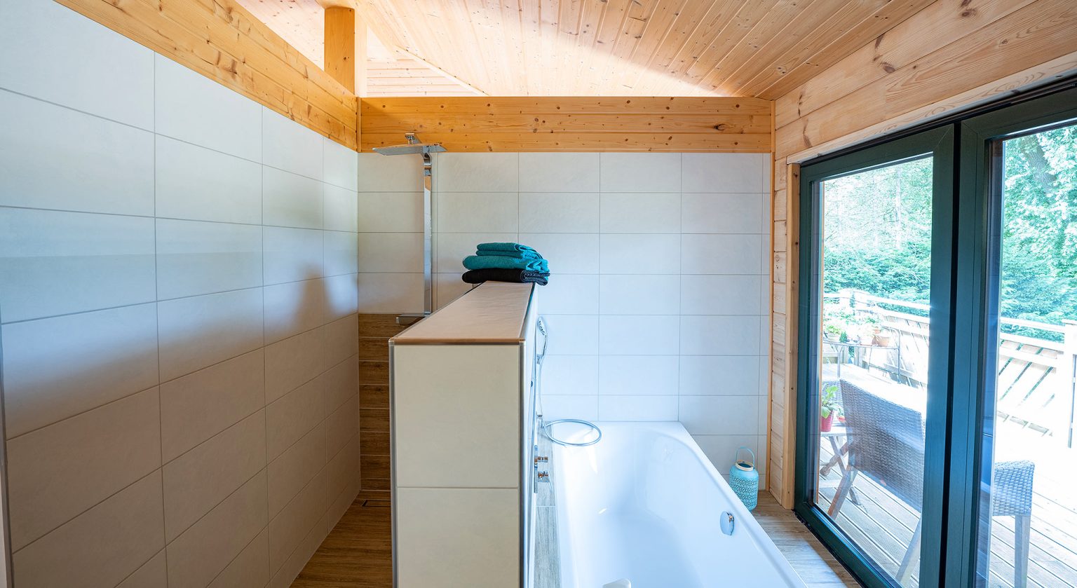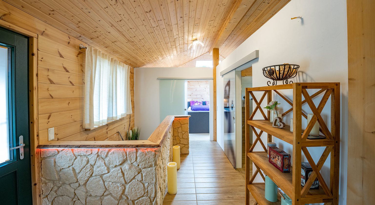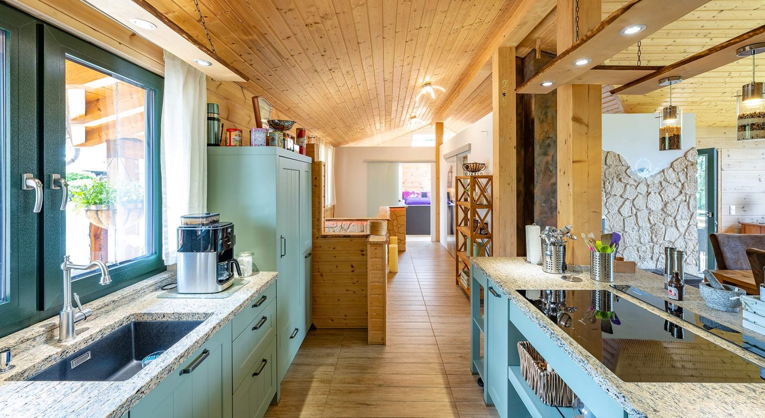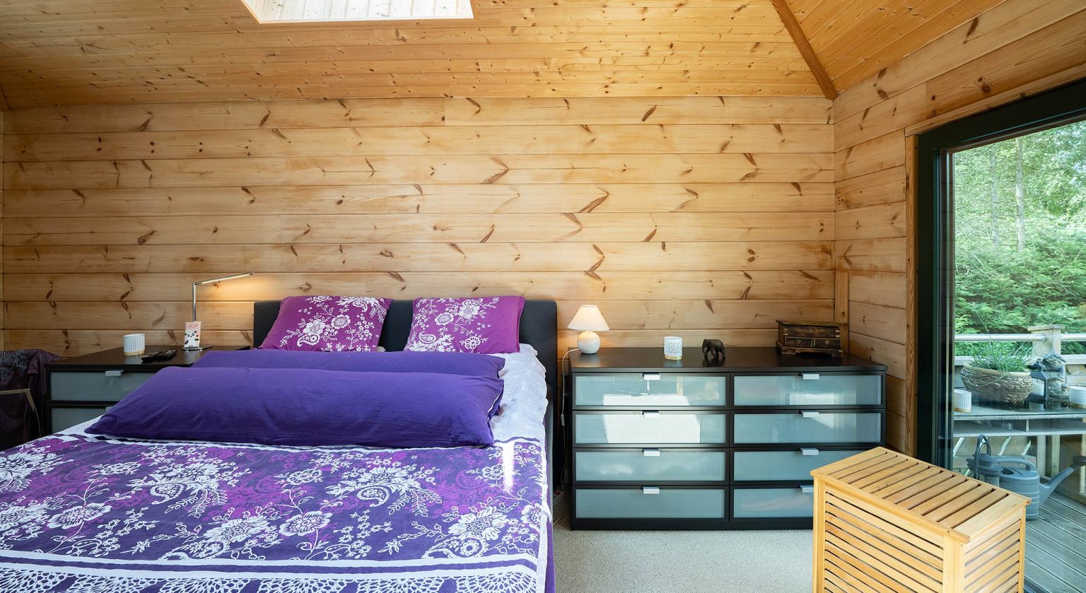 Obwohl sich die Eigentümer für eine Richtmeistermontage mit viel Eigenleistung entschieden hatten, konnten sie bereits nach einem halben Jahr ab Lieferung in ihr Holzhaus einziehen. „Unser Holzhaus wurde in wenigen Wandelementen und passgenau zugeschnittenen Dachbalken am 13.06. geliefert und am 18.06. konnten wir schon Richtfest feiern.“, erinnert sich Sylvia. Beim Hausbau und Innenausbau halfen einige Freunde mit, die Holzhaus Montage geschah unter der Regie und Vorarbeit des Richtmeisters von Fullwood. Probleme gab es keine. Beheizt wird Holzhaus „Hoffmanns am See“ über eine Fußbodenheizung mit Gas. „Als Bodenbelag haben wir Marmorsplit ausgesucht. Der ist super geeignet dafür.“, fährt der Hausherr fort. Überhaupt haben er und seine Frau sehr viel Kreativität und Individualität in ihr Zweipersonenhaus einfließen lassen. „Wir fühlen uns rundum wohl und sind sehr zufrieden mit allem. Im Außenbereich gibt es noch einiges zu tun, aber das machen wir nach und nach.“, verabschieden sich die Hoffmanns.