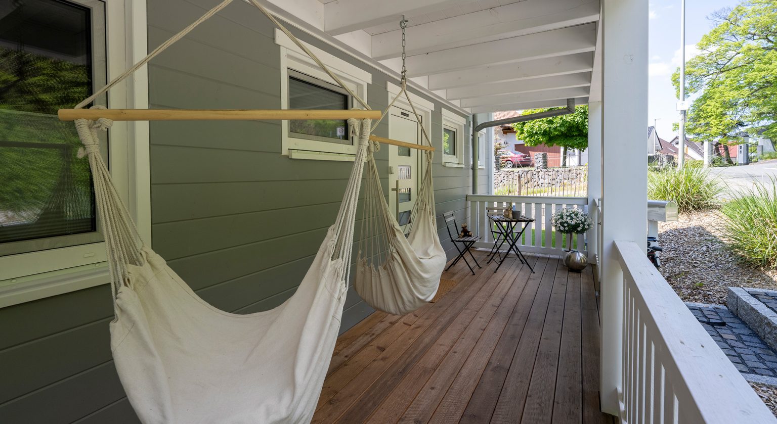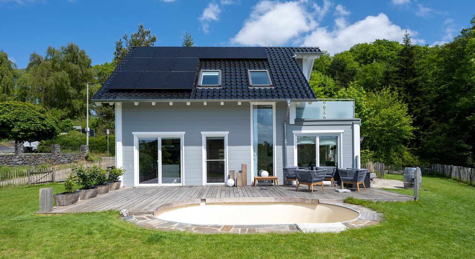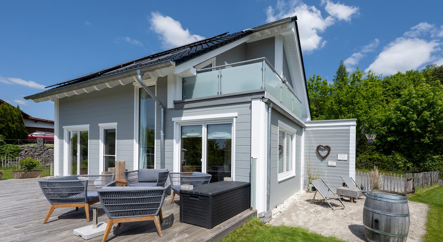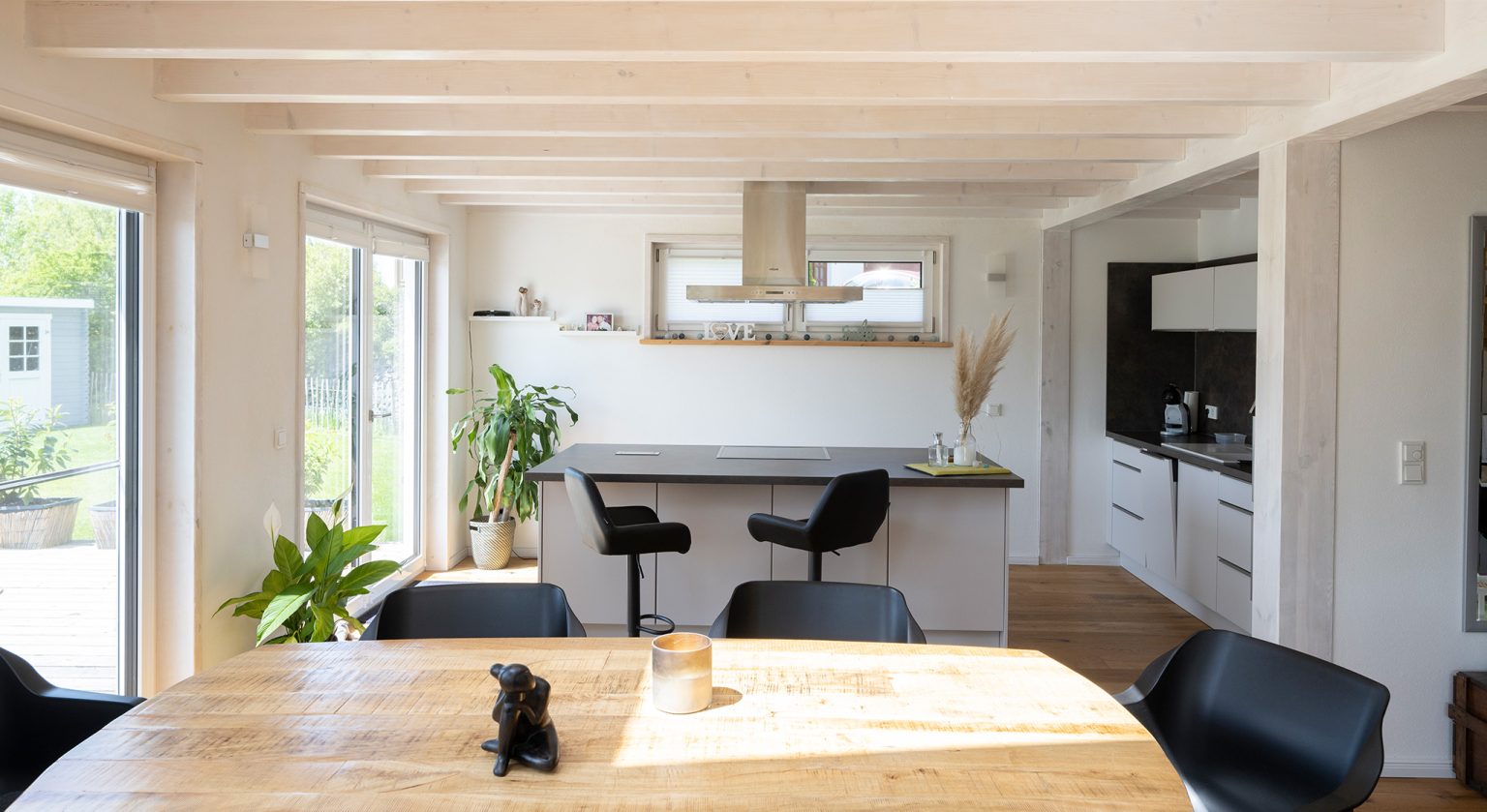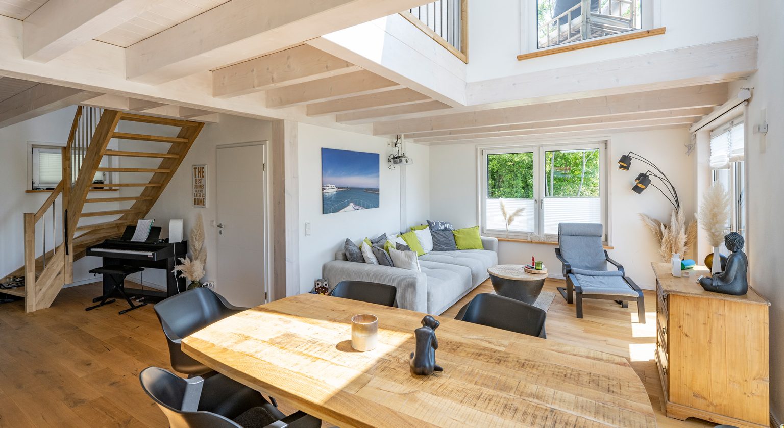 Holzhaus im Schwedenlook mit offenem Wohnkonzept und etwas Scandi Style