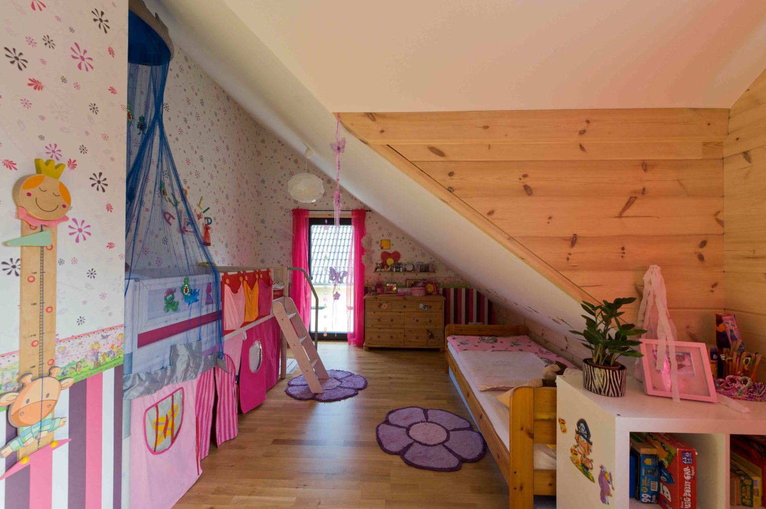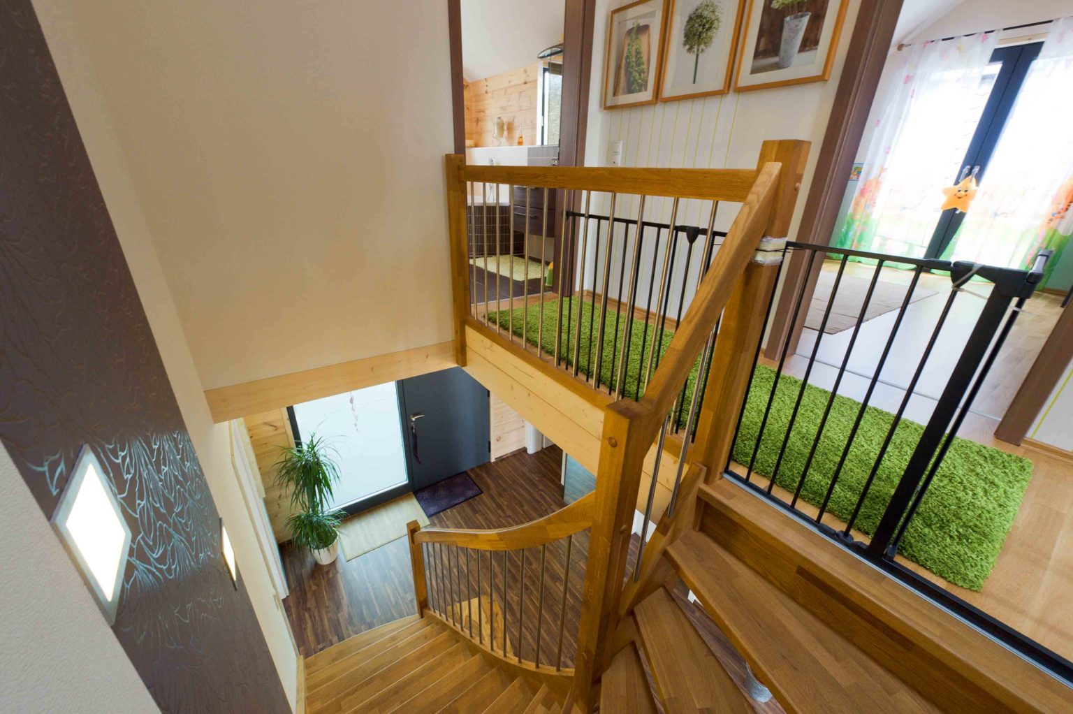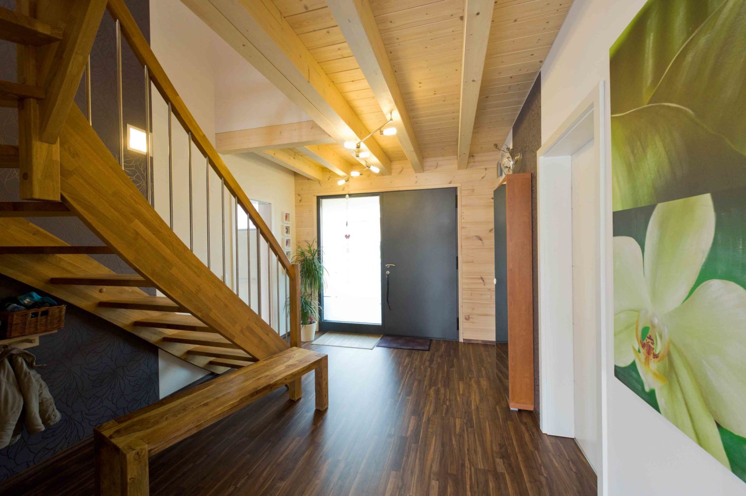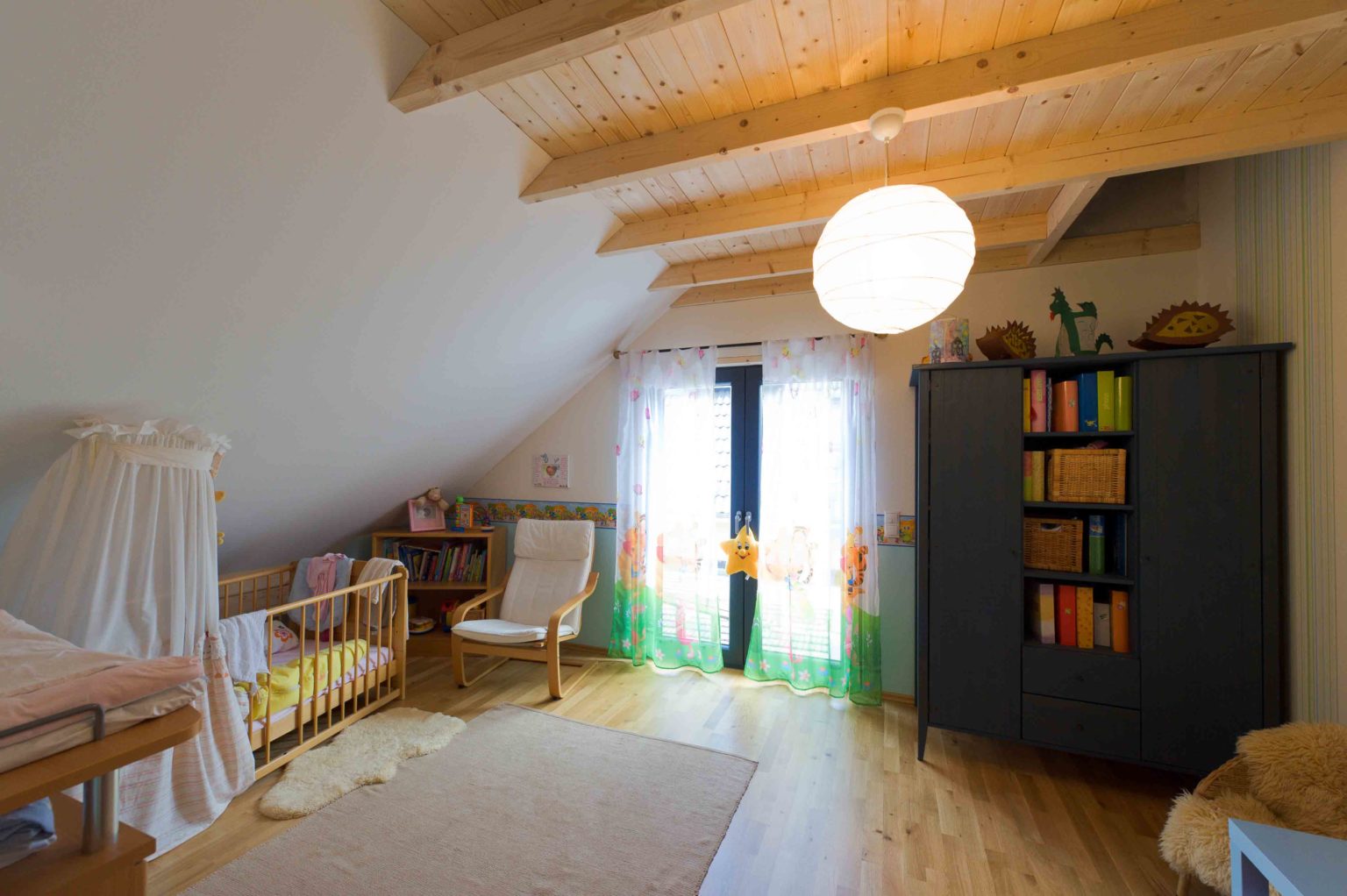 Die Richtmeistermontage – belohnt wird man mit Spaß, purem Adrenalin und tiefen Einblicken ins Baugeschehen – und mit einer besonders starken Bindung zu den eigenen vier Holzhaus Wänden. Nebenbei spart man einen schönen Batzen Geld, wenn man als Bauherrschaft unter der Anleitung und Vorarbeit eines Richtmeisters der Holzhaus Baufirma seine im Werk vorgefertigten Wandelemente selbst montiert. „Der Richtmeister und der Kran waren drei Tage vor Ort, dann stand der komplette Rohbau schon, inklusive Dachstuhl.“, erinnert sich Elisabeth Köder, die Dame des Hauses. Bis auf die Arbeiten im Heizungs-, Sanitär- und Elektrobereich hat die Familie anschließend alles selbst gemacht.