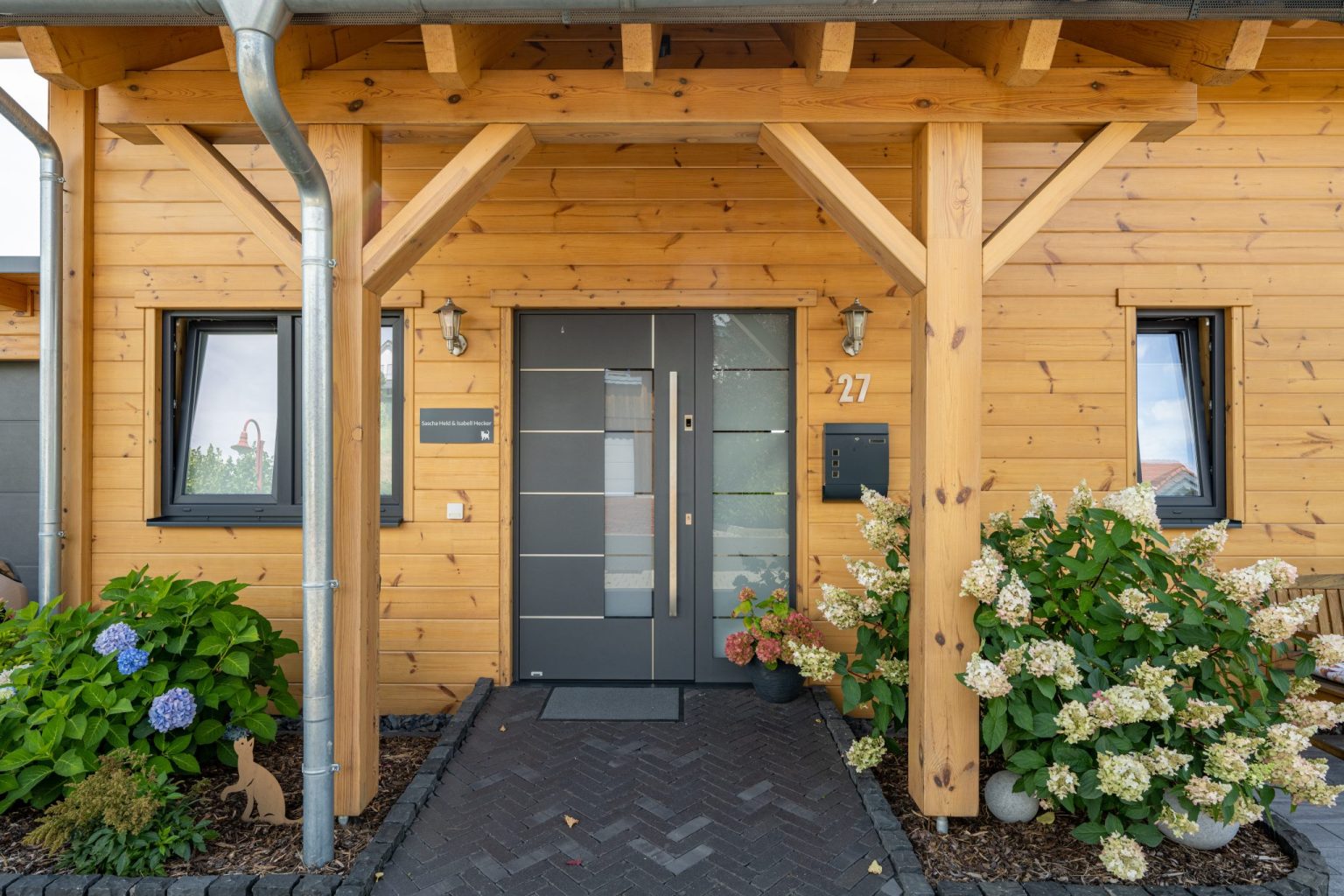 Vollkommen unvoreingenommen und offen informierten sich Isabell und Sascha Held anfänglich für ganz verschiedene Baustoffe. Als sie dann durch Fullwood Wohnblockhaus mit dem Thema Holzhaus konfrontiert wurden, legten sie sich schnell auf den Baustoff Holz und auf Fullwood fest. Für beide war klar, dass die moderne Bauweise des erfahrenen Holzhaus Herstellers die richtige für sie sei, zumal ihnen auch die Optik besonders zusagte. Überzeugen musste das junge Paar nur die Eltern, welche befürchteten, dass man die Holzwände ständig streichen müsse, damit sie nicht ihre schöne Optik verlieren. „Als das Thema Hausbau aufkam, bestellten wir unzählige Hausbau-Kataloge. In der unendlichen Menge dicker Kataloge, die eintraf, wäre das kleine, dünne Magazin von Fullwood fast untergegangen.“, erinnert sich Isabell Held. „Gut, dass wir es nicht versehentlich entsorgt haben und stattdessen die Firmenhomepage besuchten. Der anschließende Besuch des nahegelegenen Musterhauses überzeugte auch unsere Familien völlig und gab den Ausschlag, mit diesem seriösen Haushersteller zu bauen!“