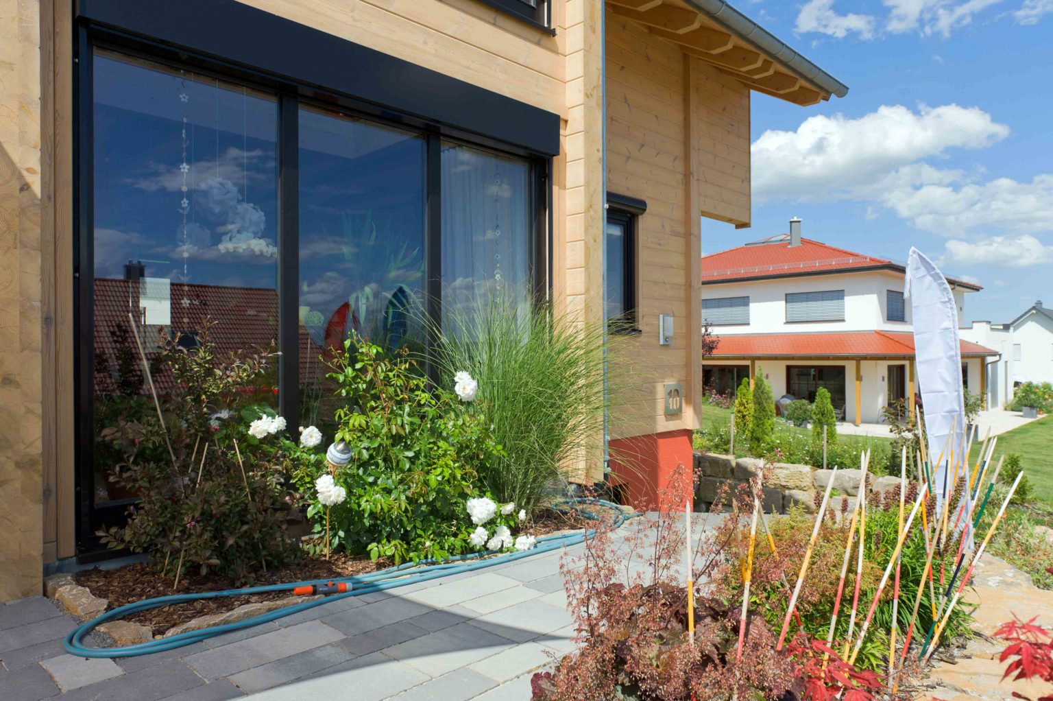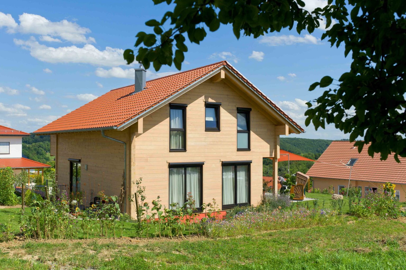 Dass der Mensch mit der Herausforderung wächst, haben die Eigentümer von Holzhaus „Kocherblick“ beim Aufbau ihres Hauses erfahren. „Wenn wir vorher gewusst hätten, wie hart die Arbeit am Hausaufbau ist, hätten wir uns die Richtmeistermontage nicht zugetraut.“, gesteht die Hausherrin. Bei Vertragsabschluss hatte man sich aus Kostengründen und voller Elan für eine Richtmeistermontage entschieden, bei der Bauherren unter Anleitung und Vorarbeit eines Zimmermanns der Baufirma ihr Holzhaus selbst aufbauen. Dafür werden die im Werk passgenau vorgefertigten Wandelemente termingetreu zum Baugrundstück geliefert, dort mittels Kran auf den Bauplatz gehievt und vom Richtmeister, den Bauherren und deren Helfern - hier waren es drei - montiert. Alles lief glatt und passte haargenau.