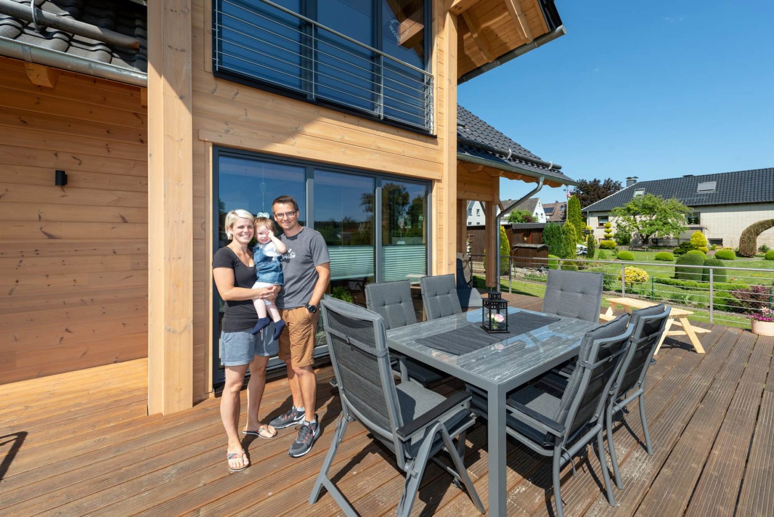 Beeindruckt besuchte das Paar das Musterhaus „Sommerwiese“ in Lohmar und Musterhaus „Barkhof“ in Sottrum und hatte so einen sehr guten Eindruck, wie verschieden die massiven Holzhäuser von Fullwood aussehen können. Bald darauf saßen Sabrina und Lars Schlüter dann schon mit ihrem Berater und dem Architekten des Holzhaus Spezialisten zusammen und planten ihr eigenes Holzhaus. Dabei wurden alle Wünsche, Ideen und Bedürfnisse des jungen Paares genau besprochen, um ein individuelles Zuhause nach Maß zu planen. Auch Grundstück und Budget wurden selbstverständlich in die Überlegungen mit einbezogen, damit es am Ende keine bösen Überraschungen gab.