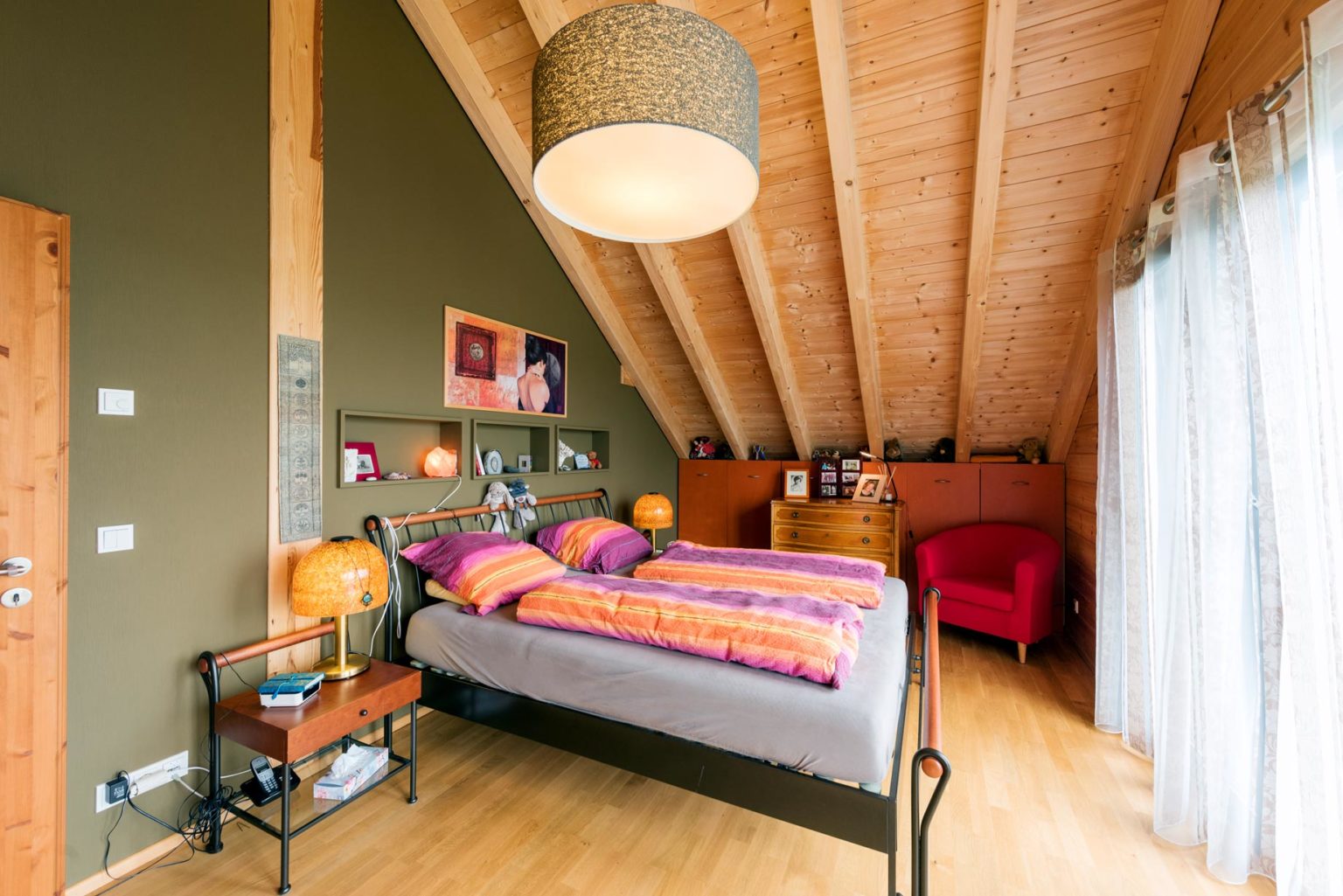 Der Lohn für den Aufwand ist heute das Leben in ihrem individuellen Traumhaus sowie ein traumhaftes Grundstück mit Weitblick im Grünen. "Unsere Holzwände fühlen sich immer warm an, egal zu welcher Jahreszeit. Selbst im Winter sind sie niemals kalt, wie beispielsweise Steinwände es wären.", schwärmt Paul Michely. Auch das Klima in seinem Holzhaus "Luxemburg" begeistert ihn: "Hier können wir getrost tief durchatmen ohne irgendwelche Schadstoffe einzuatmen. Und die Raumtemperatur ist immer angenehm." Dafür sorgen die 20cm dicken Vollholzwände aus Polarkiefer, die von Fullwood elementweise im Werk vorgefertigt wurden und dann per Tieflader zum Bauplatz transportiert wurden. Aber auch die warme Farbwahl der Wandanstriche und Tapeten für die Trennwände (leichtes Ständerwerk) sorgt neben dem vielen Holz für Behaglichkeit. "Wir lieben Kunsthandwerk aus Materialien wie Holz, mundgeblasenem Glas, Naturtextilien und Keramik. Was könnte dem einen besseren Rahmen bieten als ein massives Holzhaus, das zum Teil ebenfalls in Handarbeit entstand.", sagt die Dame des Hauses. Tatsächlich wurden die Kiefernwände von Holzhaus Luxemburg in einer Kombination aus innovativer Fertigungstechnik und alter Handwerkskunst gefertigt und von Menschenhänden montiert; freilich war auch ein Kran nötig um die schweren Bauteile an die richtige Stelle zu hieven. "Das Montageteam von Fullwood hat perfekte Arbeit geleistet: Die waren nicht nur schnell sondern auch sehr sorgfältig. Und dank der maßgenauen Arbeit der Produktionshandwerker hat jedes Bauteil gepasst.", betont der Hausherr.