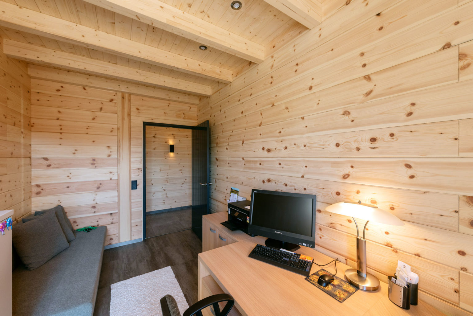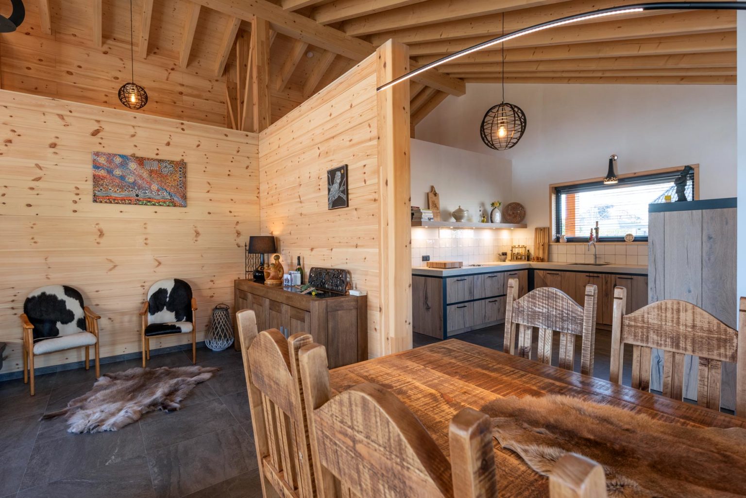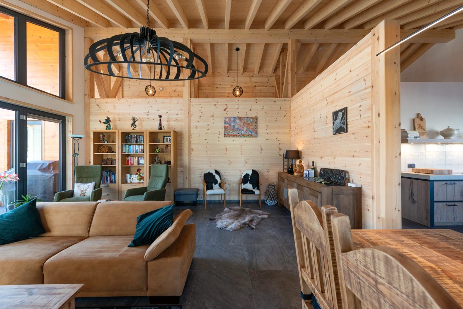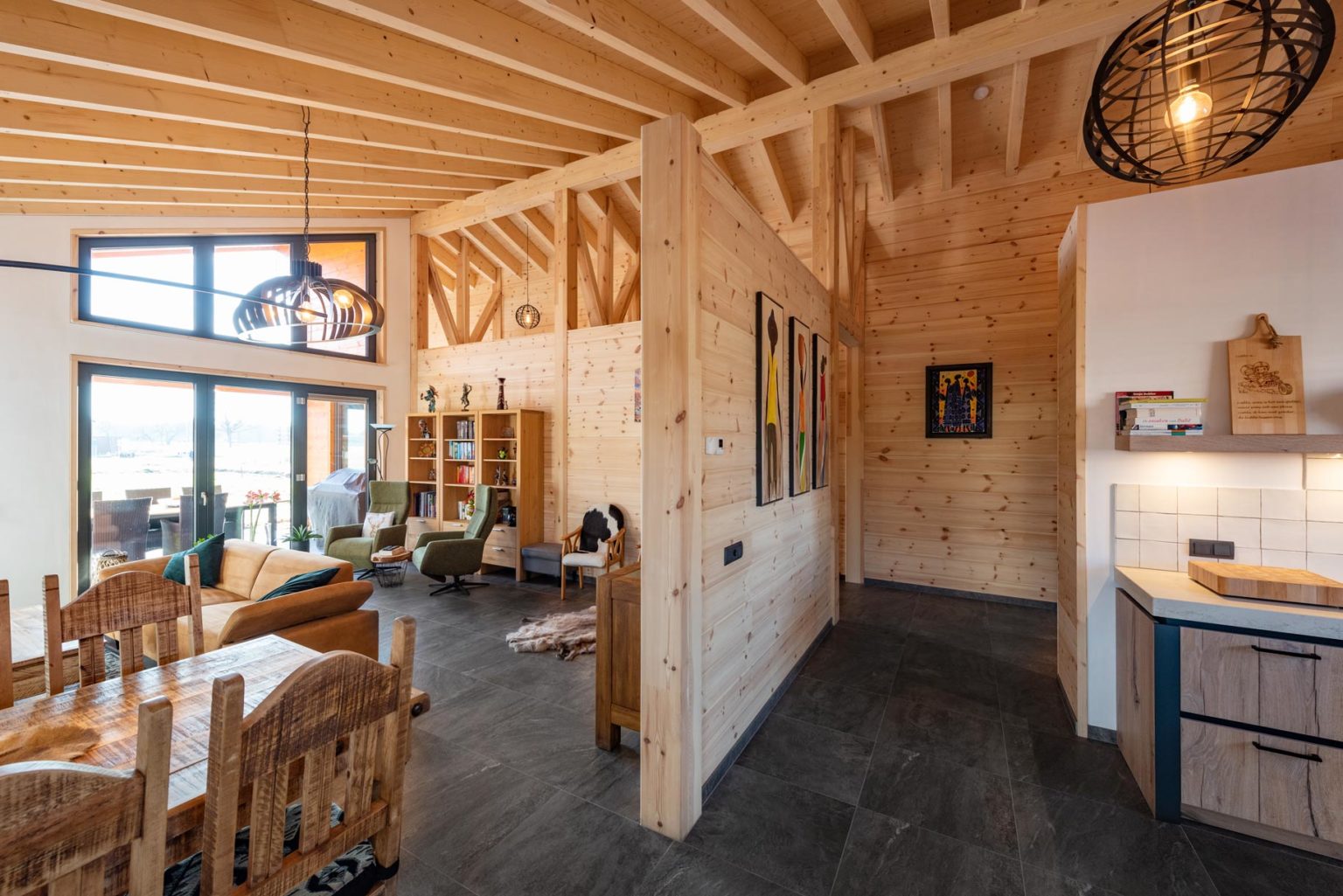 Besonders schätzt die Hausherrin, Martha Lucassen, die angenehme, warme Wohnumgebung in ihrem Holzhaus. „Auch wenn ich allein zu Hause bin, fühle ich mich nicht allein.“, sagt sie und führt das auf die Behaglichkeit zurück, die ihr Holzhaus ausstrahlt. Außerdem zaubern die Holzhäuser von Fullwood ein gesundes Raumklima, das Laib und Seele wohltut, das spüren sogar Besucher. Die nehmen auch den zarten Kiefernduft der Wände und offenen Holzbalkendecken noch bewusst war. Martha Lucassen selbst bemerkt diesen nur noch nach längerer Abwesenheit. Auch die nachhaltige und ökologische Bauweise ihres Hauses freut die Eigentümerin sowie die sehr guten Dämmeigenschaften der Wände. „Ich brauche nicht so viel Heizen, wie die offenen, sehr hohen Räume vermuten ließen. Nicht nur die Wände dämmen hervorragend, ich habe auch eine gute Dachdämmung und moderne Wärmeschutzfenster, so spare ich im Winter Heizenergie, und das tut sowohl dem Geldbeutel als auch den Atemwegen gut!“. Beheizt wird Holzhaus „Nederland“ mit einer modernen Luftwärmepumpe über die Fußbodenheizung. Diese Fußbodenheizung kann im Sommer auch als Kühlsystem verwendet werden.