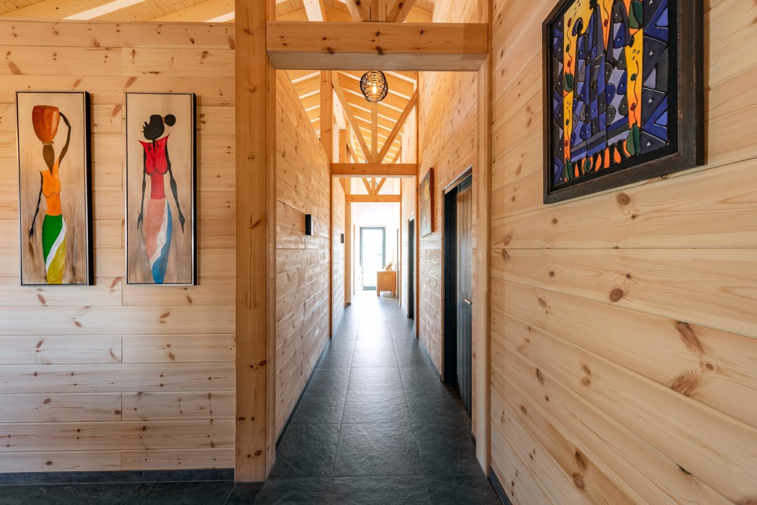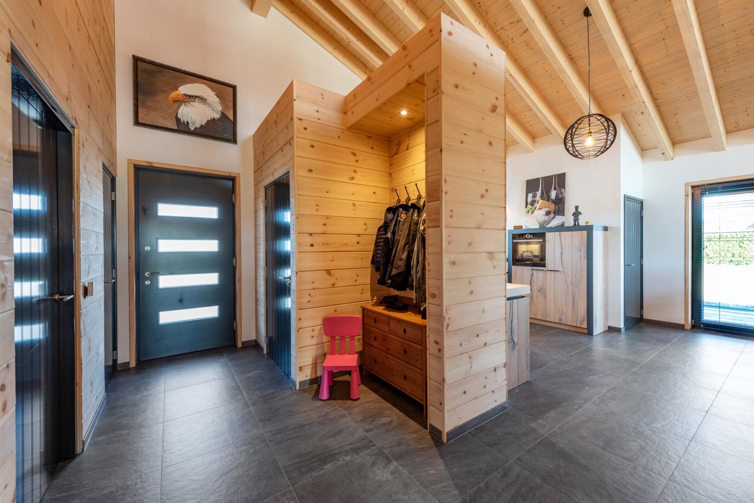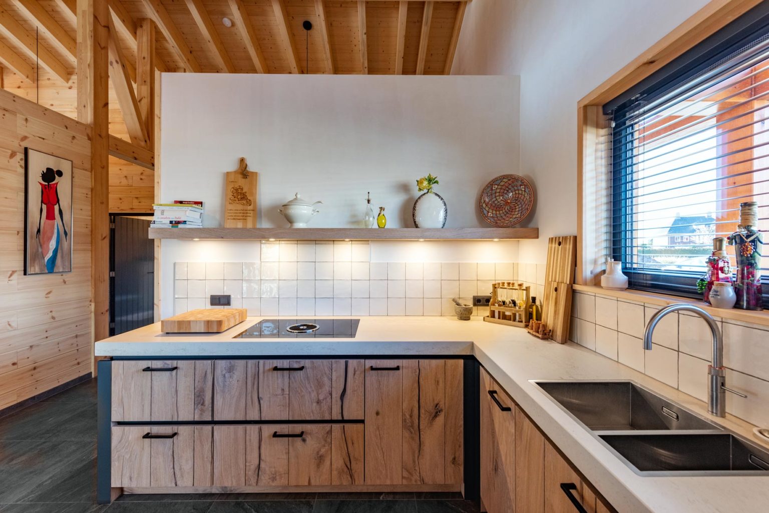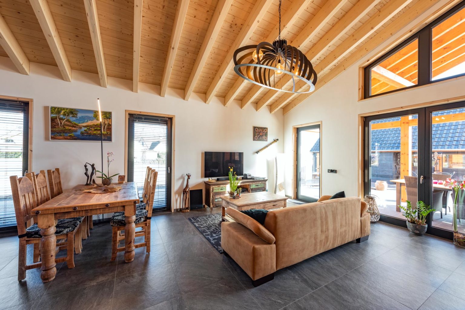 Besonders schätzt die Hausherrin, Martha Lucassen, die angenehme, warme Wohnumgebung in ihrem Holzhaus. „Auch wenn ich allein zu Hause bin, fühle ich mich nicht allein.“, sagt sie und führt das auf die Behaglichkeit zurück, die ihr Holzhaus ausstrahlt. Außerdem zaubern die Holzhäuser von Fullwood ein gesundes Raumklima, das Laib und Seele wohltut, das spüren sogar Besucher. Die nehmen auch den zarten Kiefernduft der Wände und offenen Holzbalkendecken noch bewusst war. Martha Lucassen selbst bemerkt diesen nur noch nach längerer Abwesenheit. Auch die nachhaltige und ökologische Bauweise ihres Hauses freut die Eigentümerin sowie die sehr guten Dämmeigenschaften der Wände. „Ich brauche nicht so viel Heizen, wie die offenen, sehr hohen Räume vermuten ließen. Nicht nur die Wände dämmen hervorragend, ich habe auch eine gute Dachdämmung und moderne Wärmeschutzfenster, so spare ich im Winter Heizenergie, und das tut sowohl dem Geldbeutel als auch den Atemwegen gut!“. Beheizt wird Holzhaus „Nederland“ mit einer modernen Luftwärmepumpe über die Fußbodenheizung. Diese Fußbodenheizung kann im Sommer auch als Kühlsystem verwendet werden.