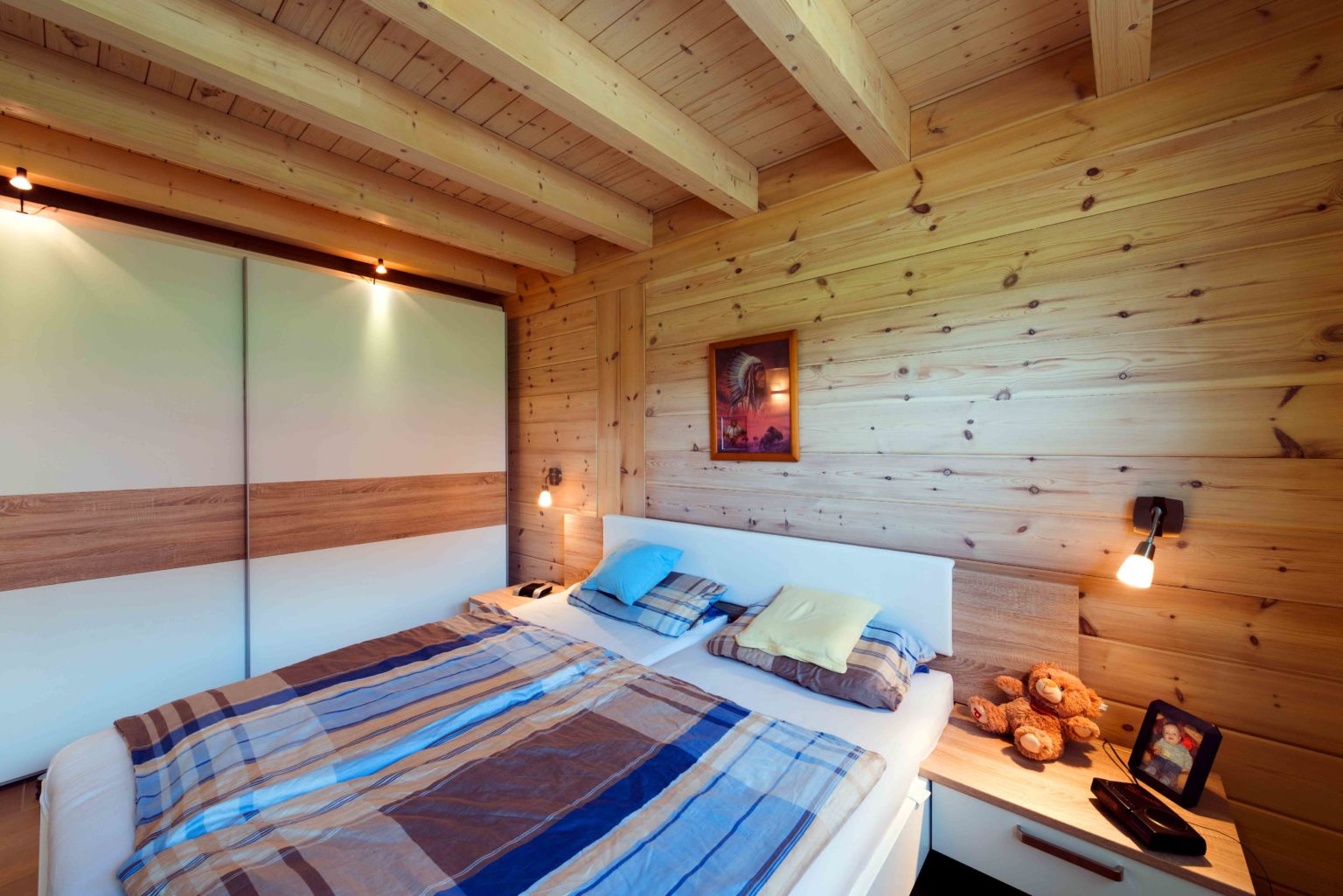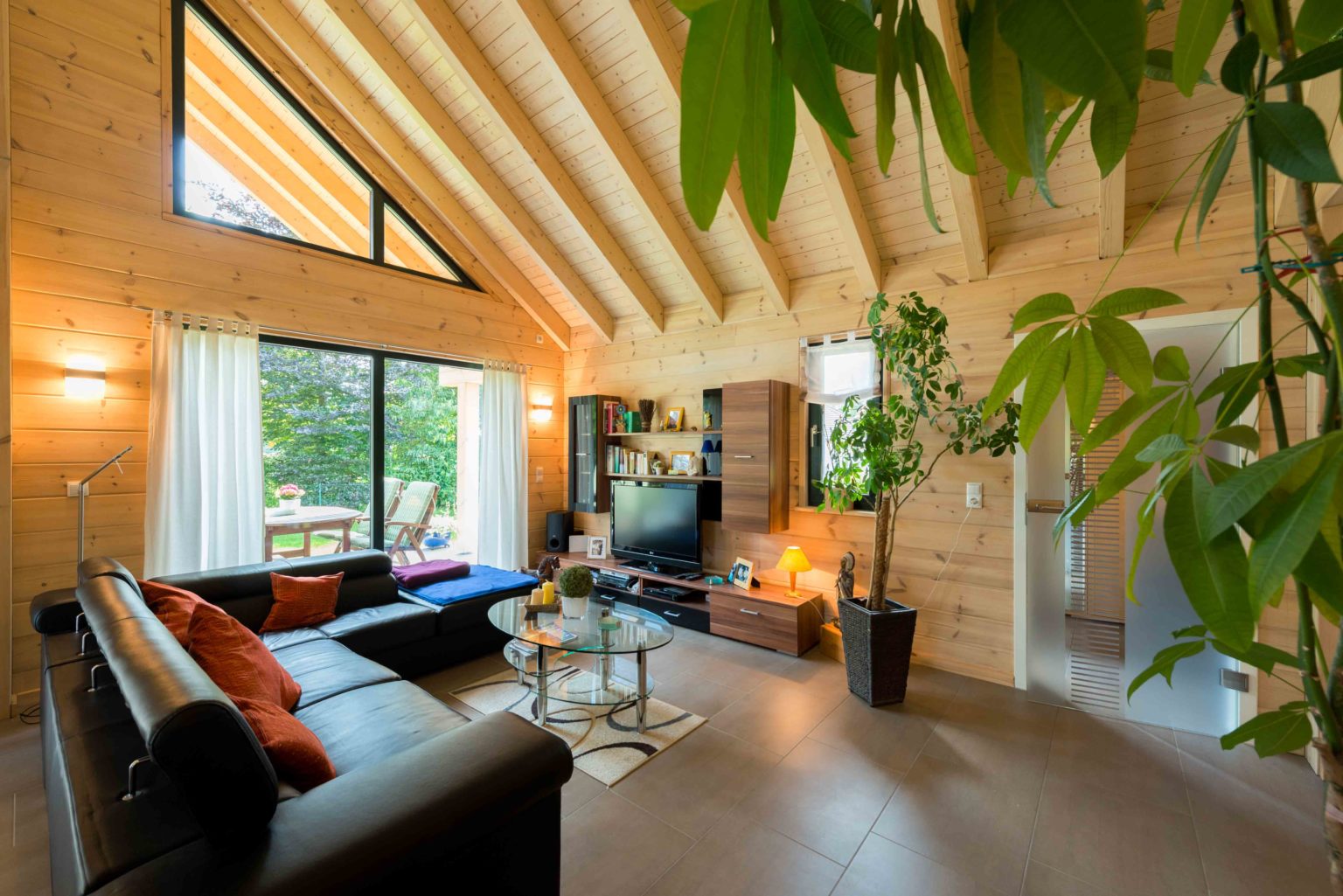 „Wir wurden schon von vorbeispazierenden Fußgängern gefragt, ob wir in unserem Holzhaus nicht frieren würden.“, lacht Britta Jürgens. „Die Leute haben zum Teil schon sehr seltsame Vorstellungen. Tatsache ist, dass unsere Massivholzwände im Winter die Wärme schön drinnen halten und im Sommer die Hitze draußen. Außerdem haben wir natürlich Wärmeschutzfenster und eine gute Aufdachisolierung. Im Jahr kommen wir auf nur 600 € Heizkosten fürs gesamte Holzhaus.“, fährt sie fort. Um von steigenden Gaspreisen unabhängig zu sein, entschied sich das Ehepaar beim Heizen für Erdwärme. Dank des sandigen Bodens ihres Grundstücks funktionieren die flächig verlegten Rohre in 1,50 Meter Tiefe sehr gut. Eine kostspielige Tiefenbohrung war nicht notwendig. Dass Holzhaus „Niedersachsen“ nachhaltig produziert und als Ökohaus gebaut wurde, freut seine Besitzer ebenfalls. Schließlich sind sie verantwortungsvolle Eltern, deren Horizont nicht nach dem eigenen Leben endet. Beim Entstehen des Baustoffs Holz wird keine „graue“ Energie verbraucht, im Gegenteil: In der Wachstumsphase nehmen Bäume Kohlendioxyd auf, speichern es als Kohlenstoff und Zucker, und geben Sauerstoff ab. Dieser Speichervorgang dauert auch nach dem Verbauen des Holzes an. Beim Transport des Holzes und der Wandproduktion sowie dem Wandtransport wird auch nur wenig „graue“ Energie benötigt. Das Holz für die Hauswände stammt außerdem aus ökologischer Forstwirtschaft. Da es chemisch unbehandelt ist, erzeugen die Wände ein wohltuendes Raumklima, von dem die Hausbewohner profitieren. „Wir fühlen uns rundum wohl in unserem „kleinen Kanada“, würden alles wieder genau so planen und bauen.“, sagt Frank Jürgens zufrieden. „Hier sind wir endgültig angekommen!“, bekräftigt seine Frau.