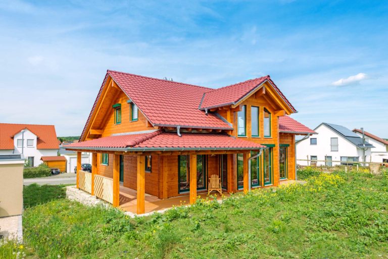 "Wir haben ursprünglich nur deshalb ein Holzhaus gebaut, weil's uns gefällt und weniger an ökologische Gründe dabei gedacht. Tatsächlich haben wir nun ein echtes Ökohaus, sogar mit zertifizierter CO2-Senkenleistung.", freut sich Jasmin Fuchs. Die junge Hausherrin genießt vor allem das angenehme und wohltuende Wohnklima in ihrem Holzhaus und nimmt besonders nach Urlauben den zarten Kiefernduft wieder war. "Das riecht dann immer nach Zuhause.", schwärmt auch ihr Lebensgefährte. Dass der Pelletsverbrauch sehr niedrig ist, und Holzhaus Oberpfalz einen deutlich niedrigeren Heizenergieverbrauch hat als der theoretisch errechnete U-Wert vermuten ließe, führen die Hauseigner auf die hervorragend dämmenden Vollholzwände von Fullwood zurück. Auch die Wärmeschutzfenster und Aufdachisolierung leisten dazu ihren Beitrag. Vermutlich auch der psychosomatische Effekt der 2-3 Grad höher gefühlten Temperatur in Holzhäusern. Außerdem: Naturholz ist ein sehr Klima und Gesundheit freundlicher Baustoff. Denn Bäume produzieren in der Wachstumsphase Sauerstoff und nehmen gleichzeitig CO2 auf, das sie selbst im verbauten Zustand noch speichern. Da das Holz für die Holzhäuser von Fullwood aus nachhaltiger, ökologischer Forstwirtschaft kommt, und bei Transport und Hausproduktion sehr wenig graue" Energie verbraucht wird - also wenig CO2 ausgestoßen wird -, ist Holzhaus Oberpfalz ein leuchtendes Beispiel für ökologisches und Klima freundliches Bauen und Wohnen.