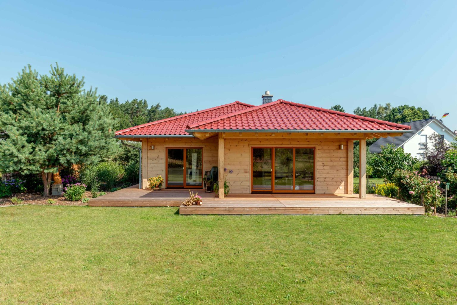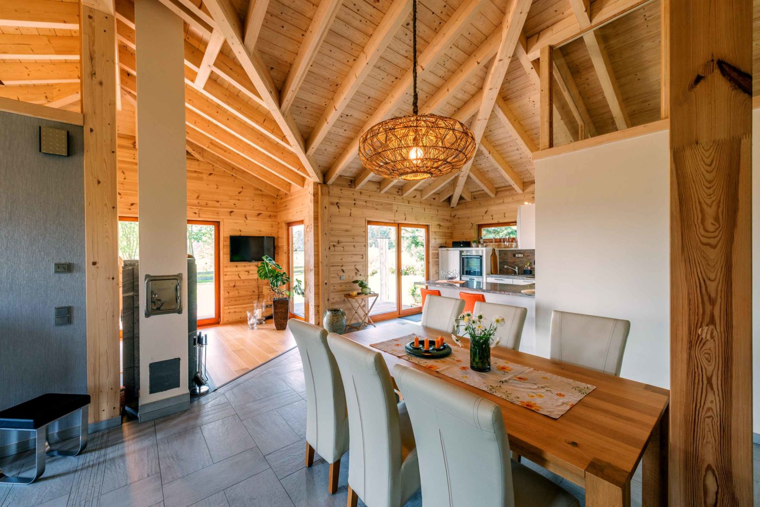 Auf Holzhäuser stießen die Eigentümer eher zufällig beim Besuch einer Fertighausausstellung. Sie wollten möglichst schnell und sorgenfrei bauen, weshalb ihnen zuerst Holz-Fertighäuser interessant erschienen. Als sie dann zufällig an einer Hausmontage von Fullwood vorbeikamen, und daraufhin eines der Musterhäuser dieses Holzhausspezialisten besuchten, waren sie spontan begeistert vom einzigartigen Raumklima, das es nur in massiven Holzhäusern gibt. Die kurze Bauzeit und das qualitativ hochwertige Fertigbausystem von Fullwood überzeugte das Ehepaar, genau wie die individuelle Planung und der kundenfreundliche Service. Heute sind sie begeistert von der guten Dämmeigenschaft ihrer einschaligen Vollholzwände, die – zusammen mit der Aufdachisolierung - für einen niedrigen Heizenergieverbrauch sorgen. So lässt es sich komfortabel und sorglos Urlauben und Leben.