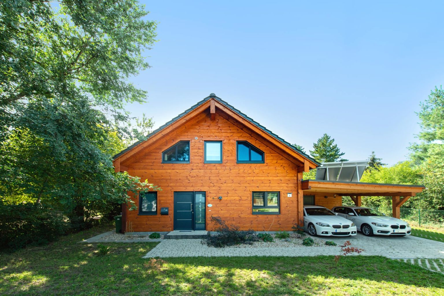 Kompaktes Holzhaus mit Doppelgaube & Doppelcarport