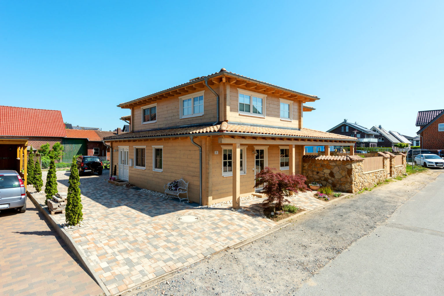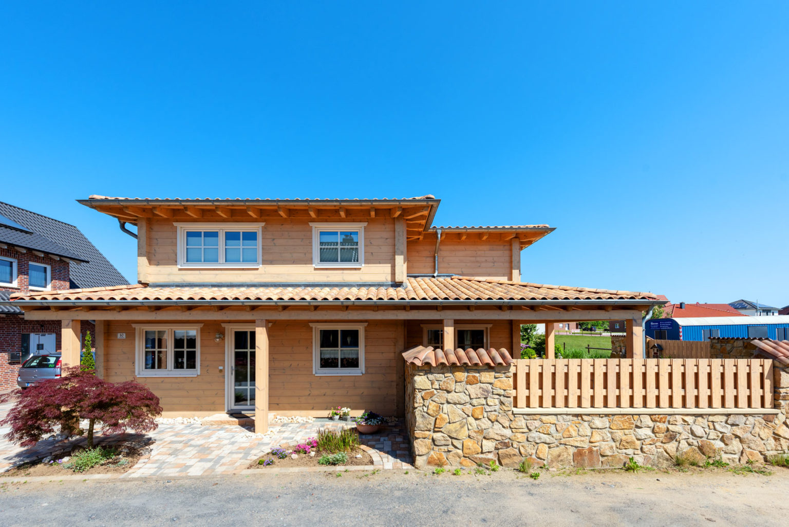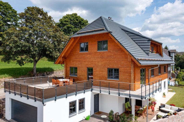 Holzhaus mit zwei Vollgeschossen dank hohem Kniestock