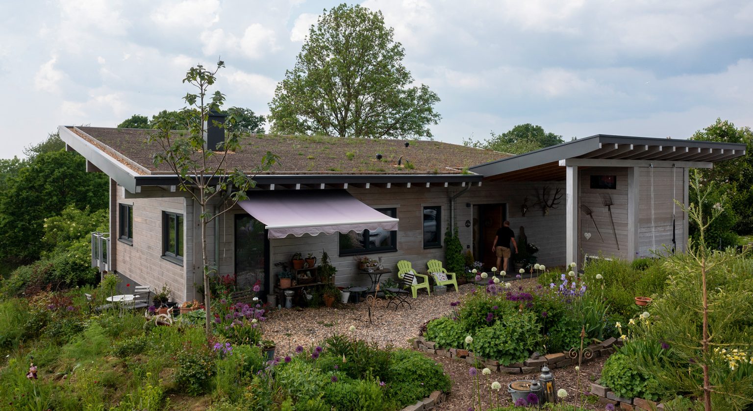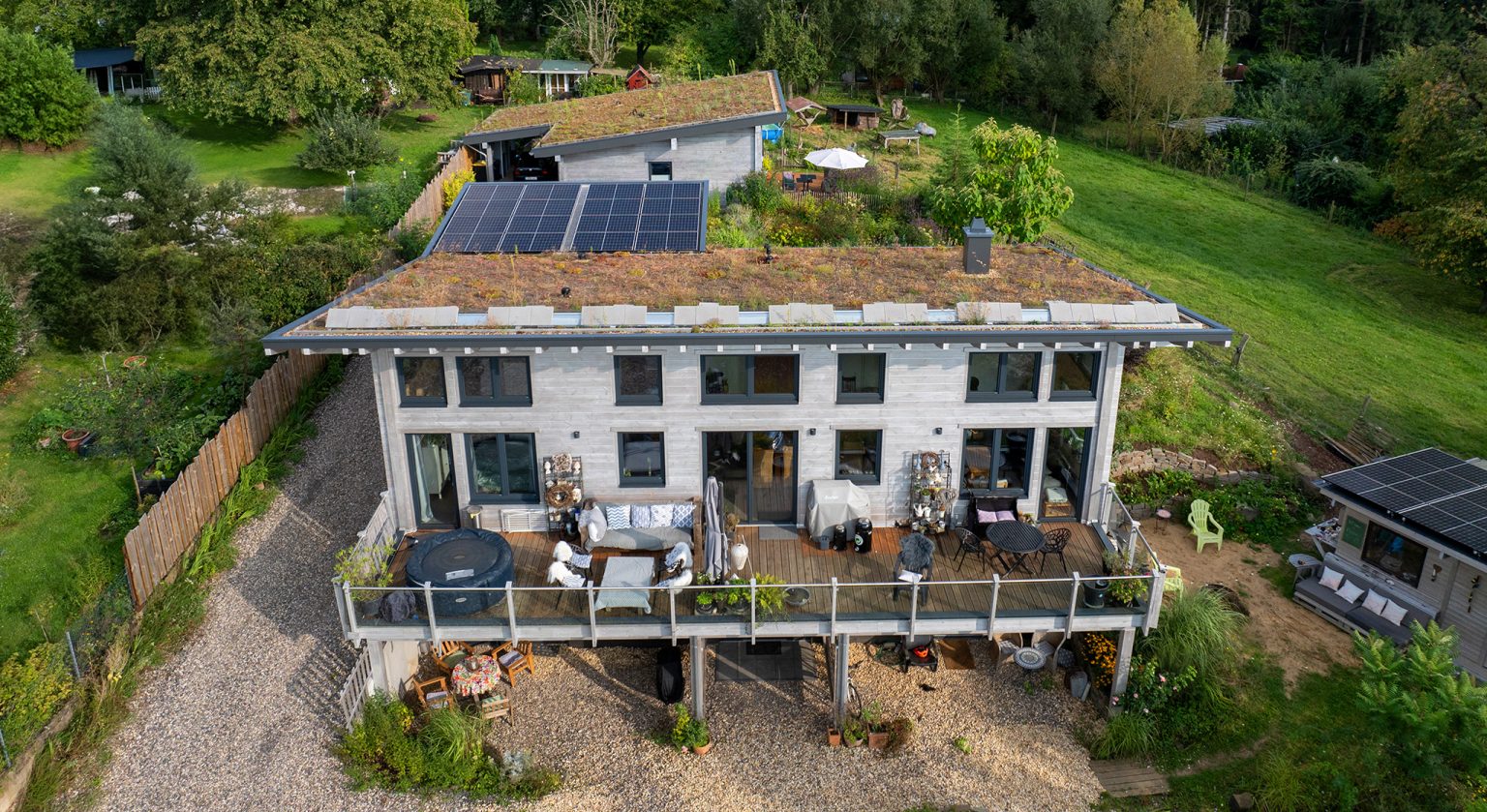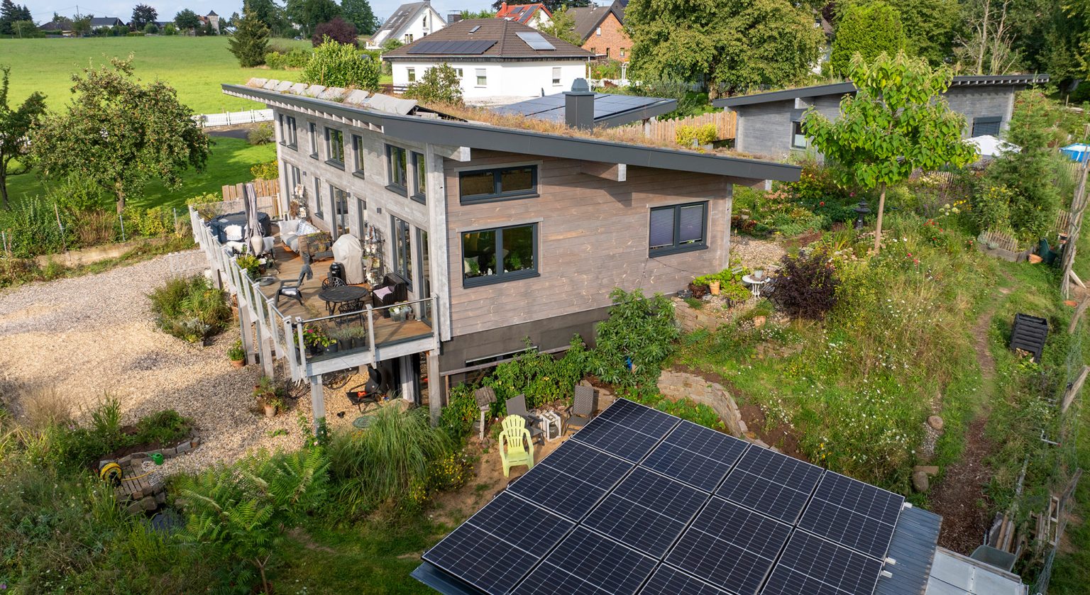 Ökologisch gebautes Holzhaus mit sparsamer Nutzung erneuerbarer Energien
