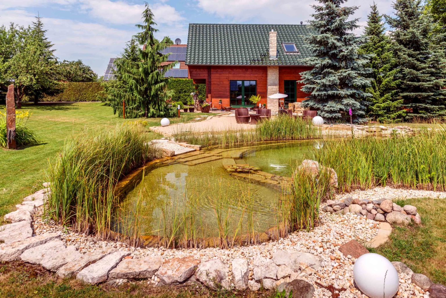 Rustikales Holzhaus mit Schwimmteich, Strand & Tann