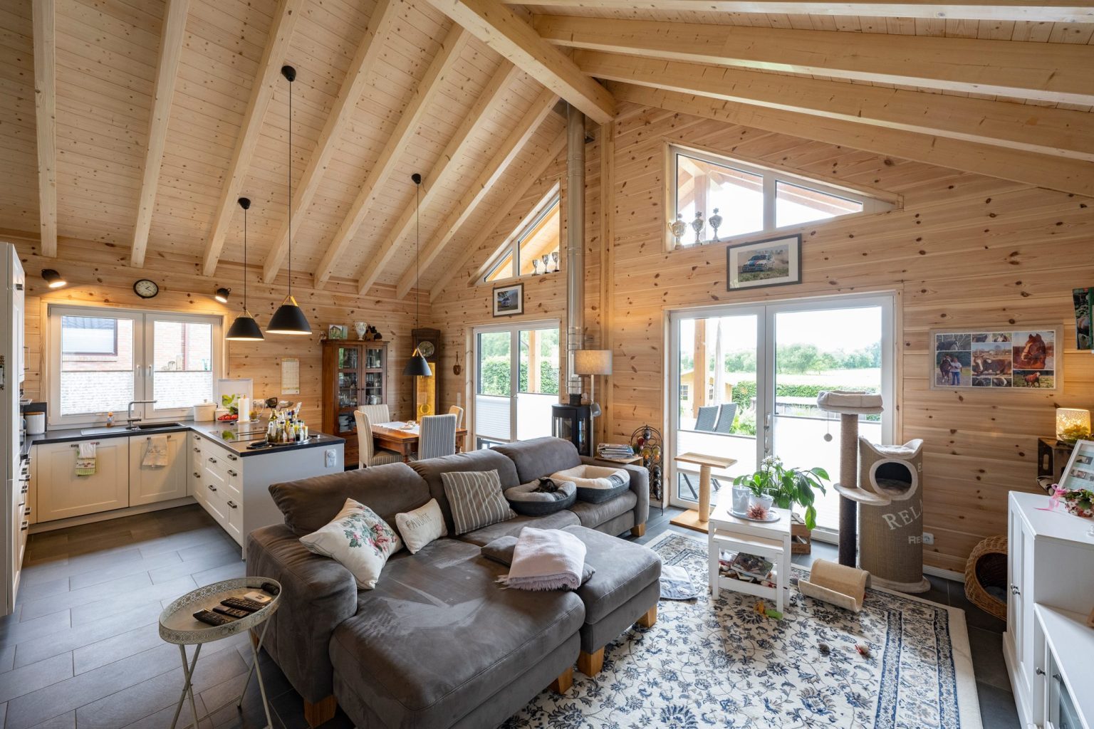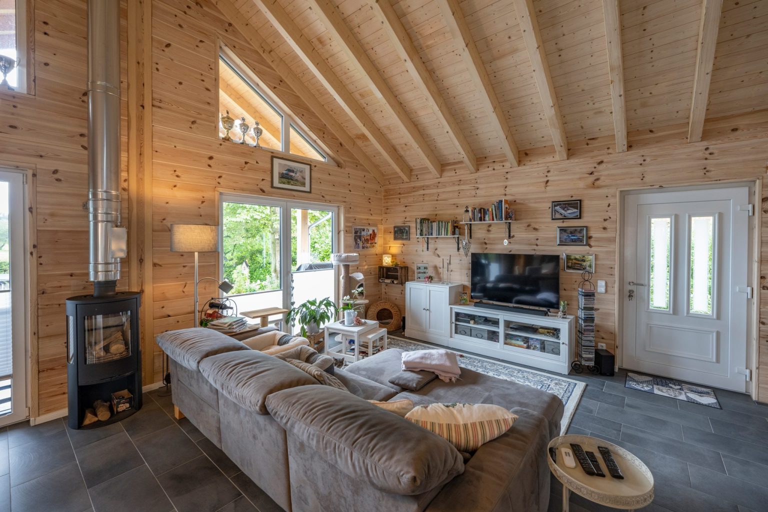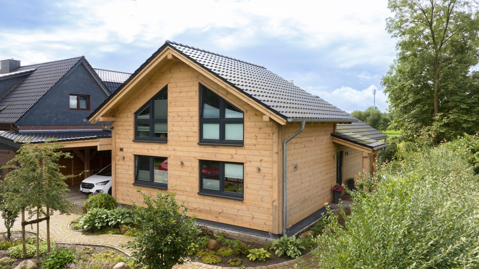 Vom Musterhaus ins eigene Holzhaus – so erging es Lars Tietjen und Anja Lange. Ursprünglich wollten die beiden eine bestehende Holzhaus-Immobile erwerben. Bei der Besichtigung traten allerdings einige Fragen auf, die der Makler nicht beantworten konnte. Also fuhr Lars Tietjen zu den Profis von Fullwood Wohnblockhaus ins nächstgelegene Musterhaus, wo auch das Gespräch mit einem Hausberater stattfand. „Das Musterhaus hat mich sofort begeistert und das Gespräch war sehr informativ!“, erinnert sich Lars Tietjen. Zu Hause sagte er dann zu seiner Frau: „Wir kaufen die Holzhaus-Immobilie nicht. Wir bauen stattdessen ein neues Holzhaus mit Fullwood!“. Neben der Optik schwärmen er und seine Frau heute besonders von dem angenehmen Raumklima und dem niedrigen Heizenergieverbrauch. „Das Wohnklima genießen wir besonders, es ist einfach ganz anders als in einem Steinhaus. Nicht nur wir, sondern auch unsere beiden Katzen fühlen sich sehr wohl in unserem Zuhause!“, betont Anja Lange.