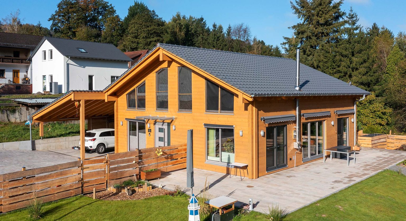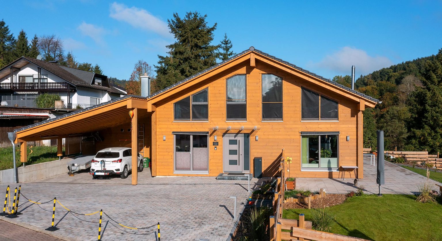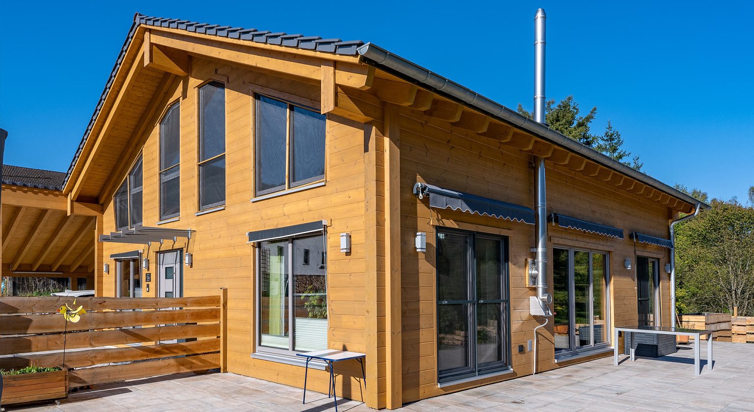 ein individuelles, helles und ebenerdiges Holzhaus mit einer freien Raumeinteilung, vielen Fenstern und für altersgerechtes Wohnen – das stand für Roman und Gaby Papenberg bei der Holzhaus Planung im Vordergrund. Eine Unterstellmöglichkeit für's Wohnmobil und Energieeffizienz kamen dazu. Als Baustoff kam einzig Massivholz in Frage!