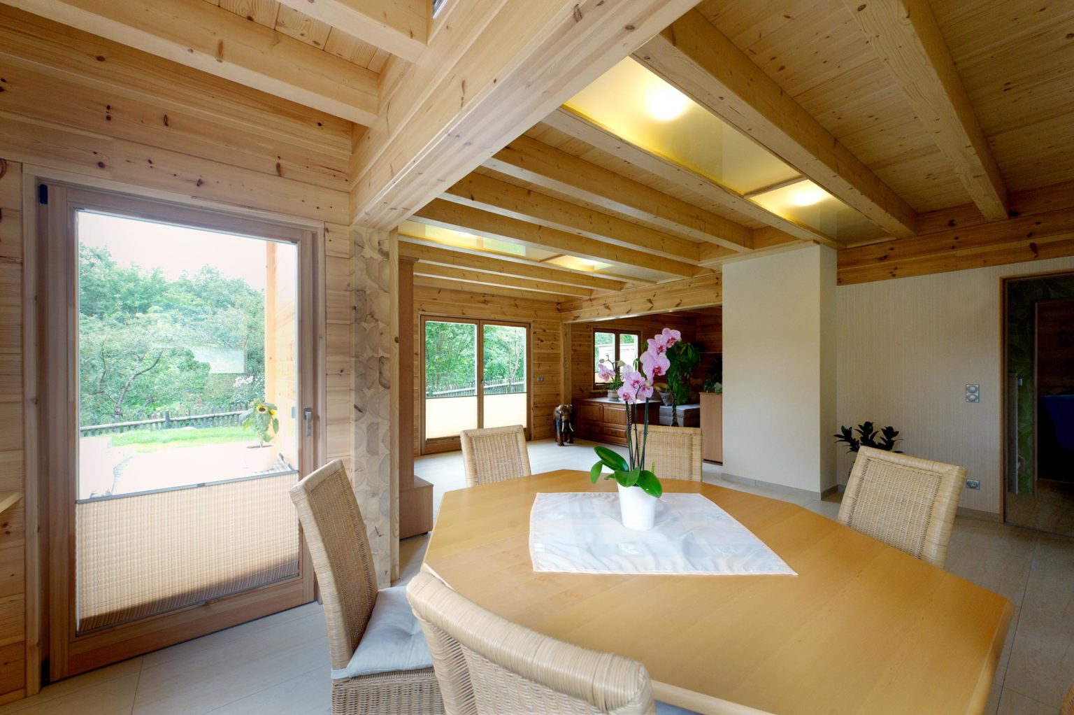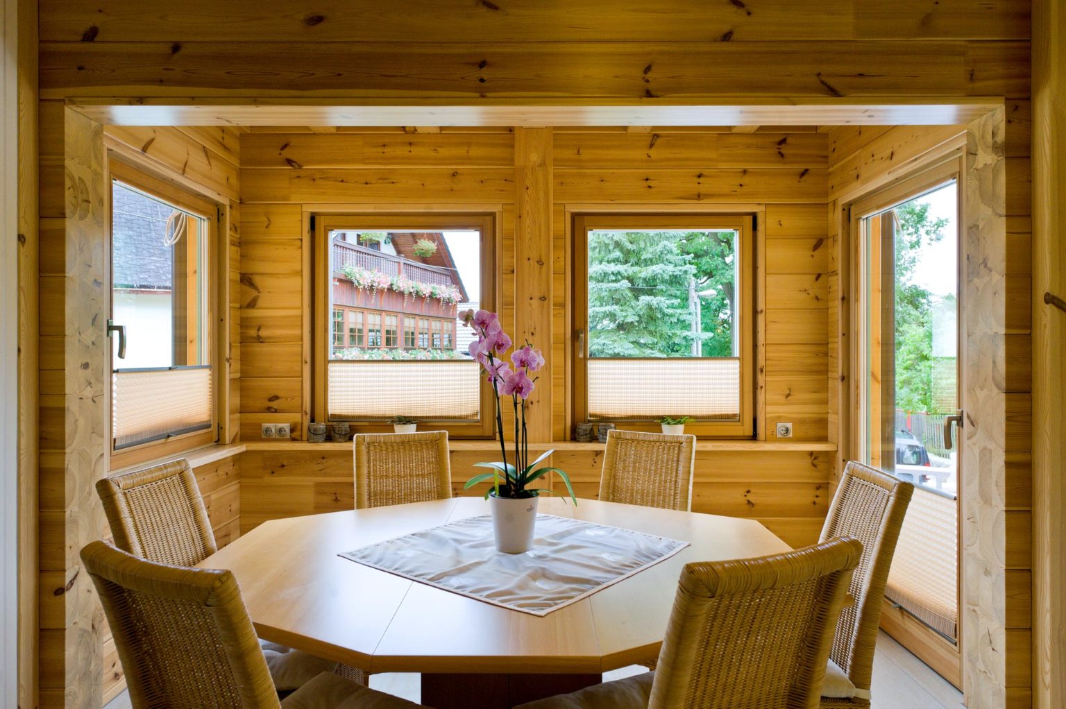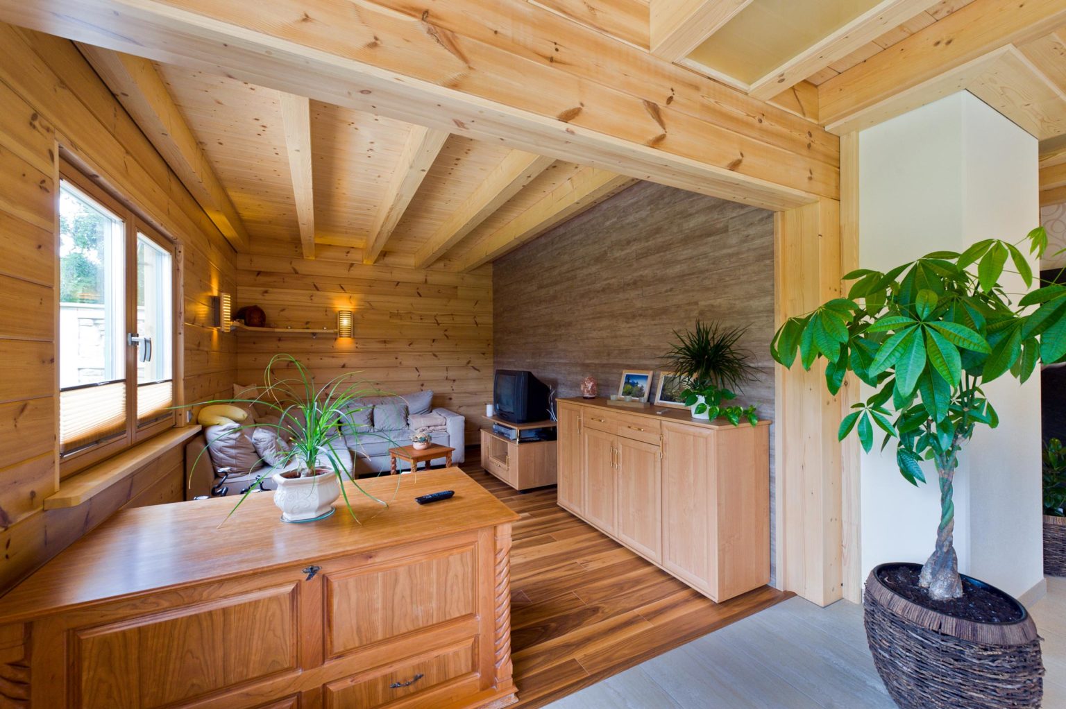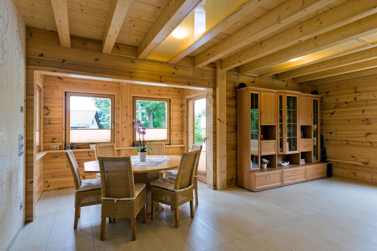 Die chemisch unbehandelten Holzwände aus Polarkiefer erzeugen ein sehr wohltuendes Klima im Holzhaus. Die Wände sind diffusionsoffen, „atmen“ also, und gleichen Feuchtigkeit aus. Davon profitiert das Wohlergehen der ganzen Familie. Außerdem ist der Heizenergieverbrauch der Holzhäuser von Fullwood in der Praxis deutlich niedriger, als der theoretisch berechnete U-Wert der Außenwände vermuten ließe: Die setzungsfreien Vollholzwände sind absolut winddicht und dämmen gut. Erwiesen ist, dass die gefühlte Temperatur in Holzumgebung zwei bis drei Grad höher ist als beispielsweise in Steinhäusern. So lassen sich Heizkosten auf angenehme Weise reduzieren.