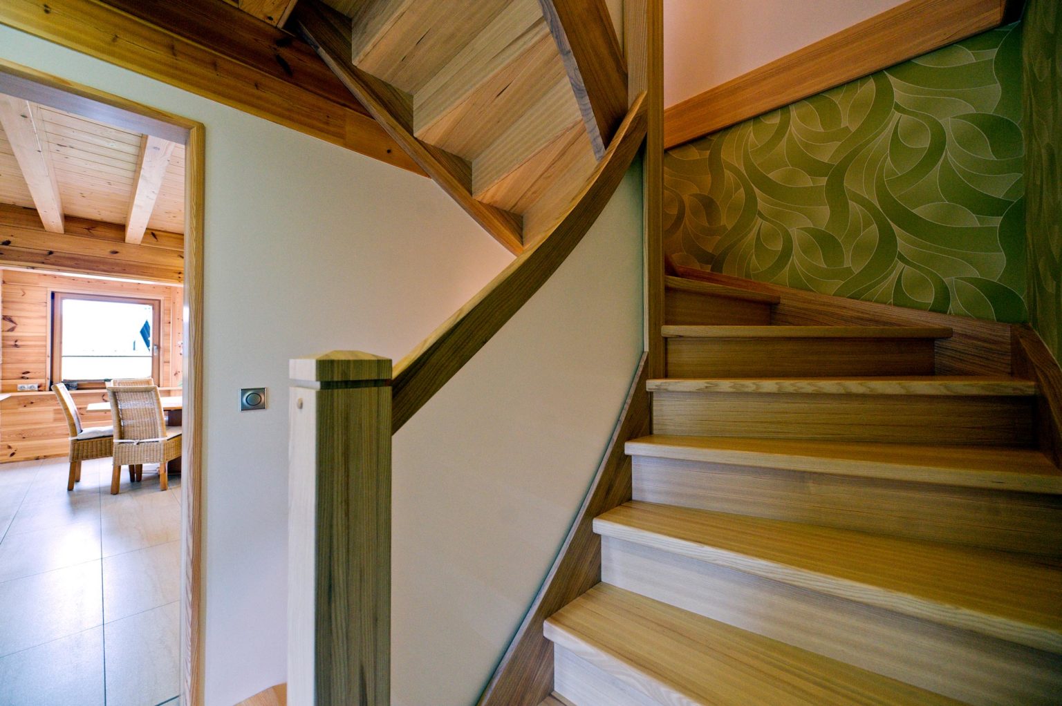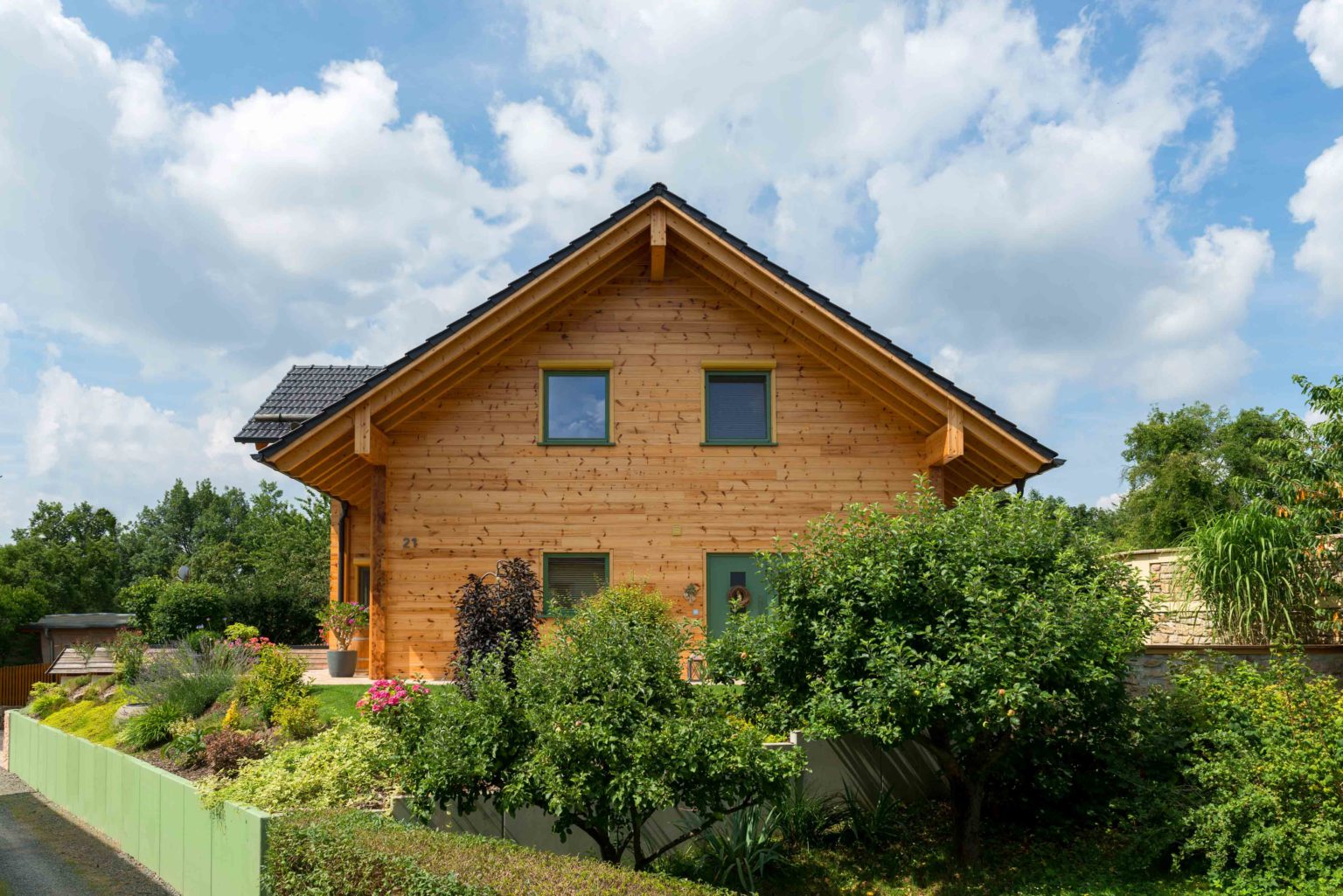 Die Familie erwärmt ihr Wasser – auch das für die Fußbodenheizung – mit Hilfe eines Holzvergaserofens. Alle drei Tage legt der Hausherr große Holzscheite nach, damit immer Warmwasser im angeschlossenen Pufferspeicher zur Verfügung steht. Holz als nachwachsender Rohstoff – der auch dem Klimaschutz dient – spielt in Holzhaus „Thüringen“ also nicht nur als Arbeits- und Baumaterial eine große Rolle im Leben der Familie. Zudem garantiert Fullwood, dass seine Häuser ausschließlich mit aus FSC oder PEFC besiegelter Forstwirtschaft produziert werden.