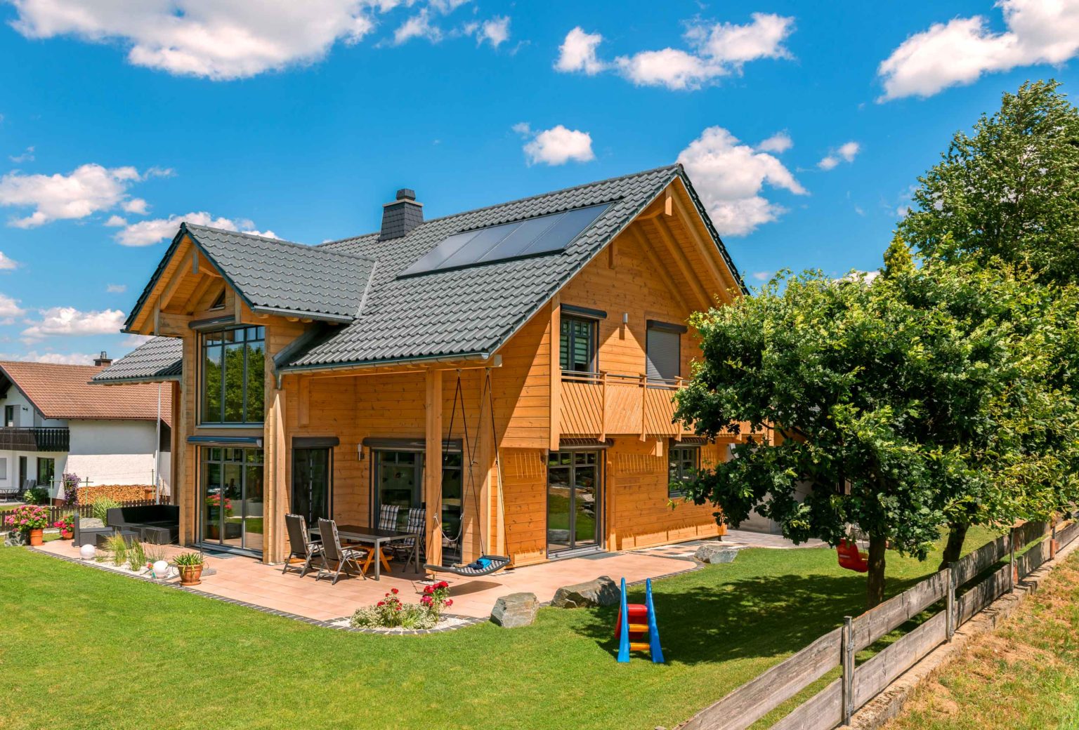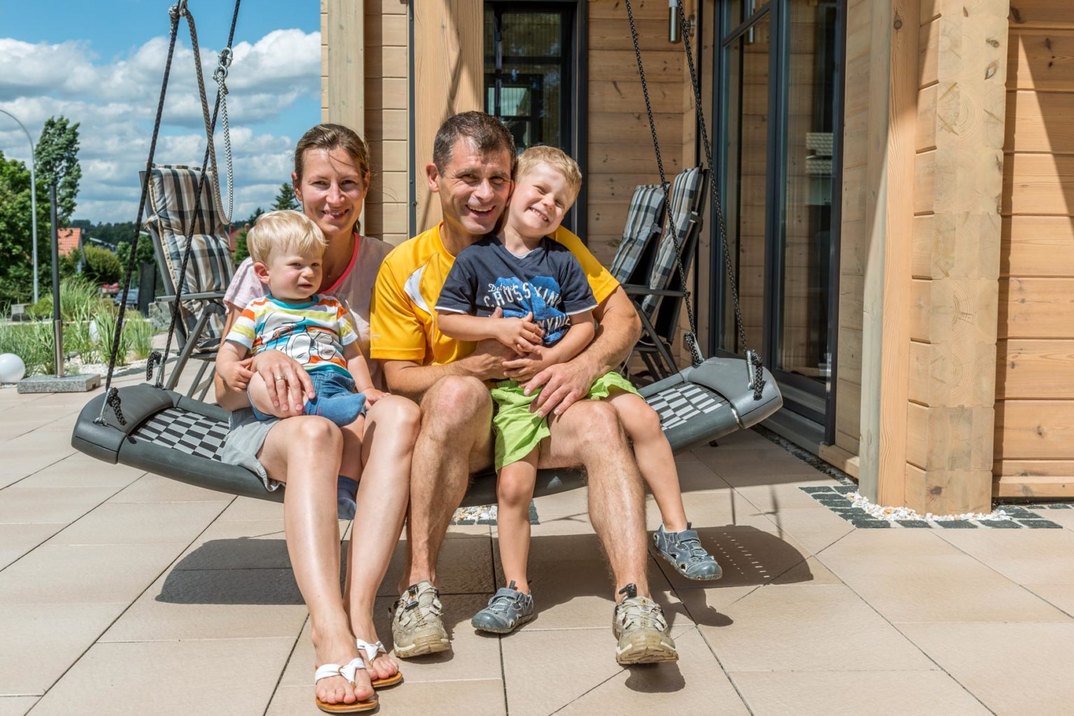 Dass ihr Holzhaus nachhaltig gebaut ist und sehr Klima freundlich produziert und bewohnt wird, erfuhr Ehepaar Kolb erst im Nachhinein. Holz als Baustoff erbringt sogar eine CO2-Senkenleistung, die in Zukunft eine große Rolle für Bauen und Wohnen spielen wird. Als nachwachsender Rohstoff schont Holz zudem die Ressourcen und schützt in seiner Entstehungsphase aktiv unser Klima! Darüber können sich später vor allem die beiden Söhne der Familie freuen, die momentan einfach nur das gute Leben im wohltuenden Raumklima ihres Heims genießen – ganz wie ihre Eltern. „Für uns ist unser Holzhaus etwas ganz besonderes, und wir finden, es ist uns auch mit den Außenanlagen sehr gut gelungen. Die anstrengende Planung, Organisation und Bauphase haben wir glücklich hinter uns gelassen und erfreuen uns jetzt ganz am Leben in unserem Traumhaus. Besonders im Winter fühlen wir uns hier fast wie damals in Kanada!“, resümiert Alexander Kolb.