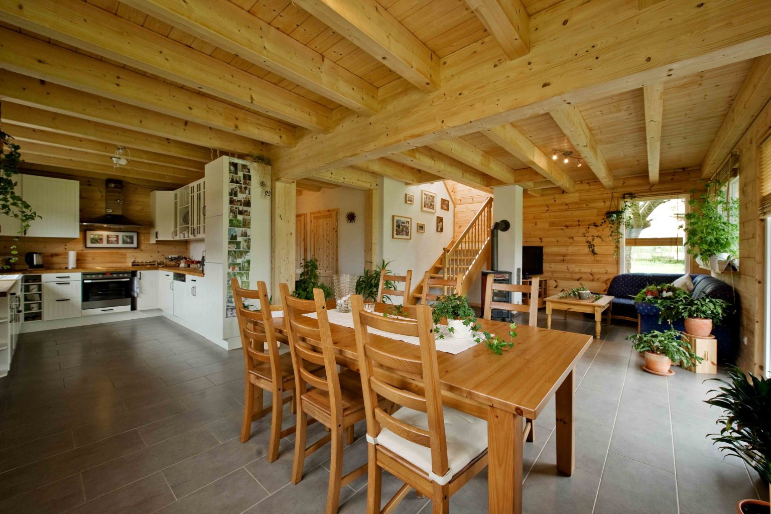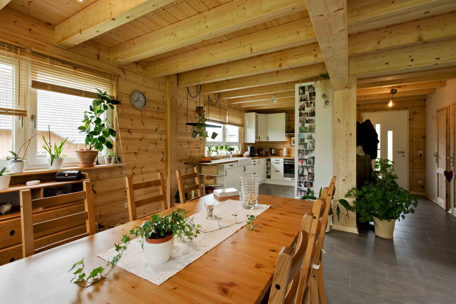 Neben der Nachhaltigkeit des Baustoffes Polar-Kiefer gefällt Eva und Christian besonders das angenehme Wohnklima in ihrem Holzhaus: mit konstant 50 - 60% Luftfeuchtigkeit ist es sehr gesund und Allergiker-freundlich. Der zarte Duft des Holzes ist dann noch das Sahnehäubchen obenauf. Hingegen bleibt der UV-Schutzanstrich der Innenwände gegen Nachdunkeln für Nase und Augen verborgen.