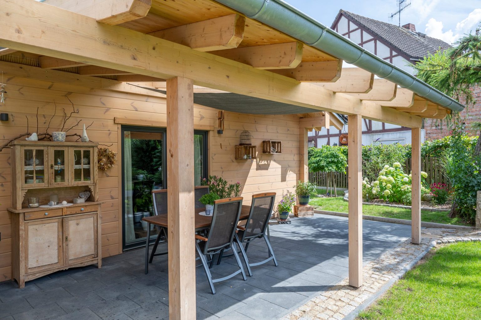 Dann ging alles Schlag auf Schlag: die Hausplanung wurde detailliert und fachmännisch von Fullwood vorgenommen, die Wand- und Bauelemente im Werk passgenau nach den Plänen angefertigt, dann termingetreu zum Bauplatz transportiert und dort binnen kurzer Zeit montiert. „Der Rohbau war schon nach drei Tagen fertig. Meine Frau und ich haben sogar mit angepackt. Alles, was für uns machbar war, haben wir eigenhändig erledigt.“, berichtet Dieter Rietz-Nause stolz und betont: „Alles verlief reibungslos!“ Jederzeit würden er und seine Frau wieder ein massives Holzhaus bauen und auf jeden Fall wieder mit Fullwood. Neben der Gesundheits- und Altersvorsorge spielten weitere Gründe eine Rolle für den Bau eines Holzhauses: „Selbstverständlich möchte man niedrige Betriebs- und Energiekosten haben und schaut auf die Energieeffizienz eines Hauses, bevor man baut. Fullwood versicherte uns, dass die Blockwände sehr gut dämmen, ganz ohne eine zusätzliche Dämmschicht und sowohl Wärmeschutzfenster als auch eine gute Dachisolierung ihr Übriges tun.“, so der Hauseigentümer. Zusammen mit einer modernen Luftwärmepumpe (Fußbodenheizung) und einer PV-Anlage auf dem Hausdach geht die Rechnung auf: Der Heizenergieverbrauch ist niedrig und die Stromkosten überschaubar. „Für die Gemütlichkeit und schnelle Strahlungswärme heizen wir zusätzlich mit einem Holzofen im Wohnbereich. Die lodernden Flammen sind schön anzusehen.“, meint Heike Rietz-Nause. Dass ihr Zuhause außerdem durch und durch ökologisch und nachhaltig gebaut wurde und sogar Klimaneutral ist, freut das Eigentümerpaar natürlich auch sehr.